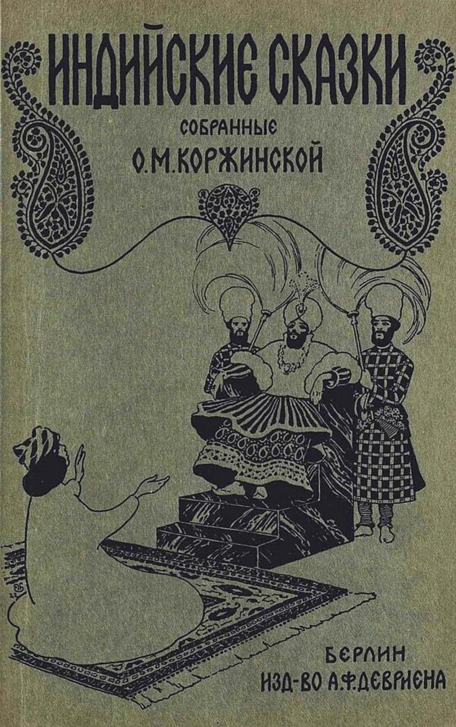 Индийские сказки / собранные О. М. Коржинской ; с рис. Н. Н. Каразина. — Берлин : Изд-во А. Ф. Девриена, [1923]. — 78 с. : ил.; 23 см.