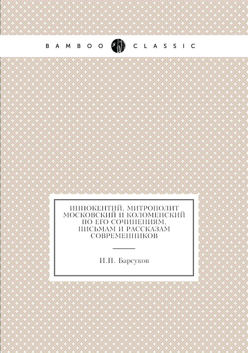 Печатная книга «Иннокентий, митрополит Московский и Коломенский по его сочинениям, письмам и рассказам современников» в мягкой обложке, язык - русский. В книге 815 страниц, она напечатана на белой офсетной бумаге плотностью 80 г/м². Формат издания — 148x210 мм. Все книги аккуратно упаковываем в прочный трёхслойный непрозрачный картонный конверт.
