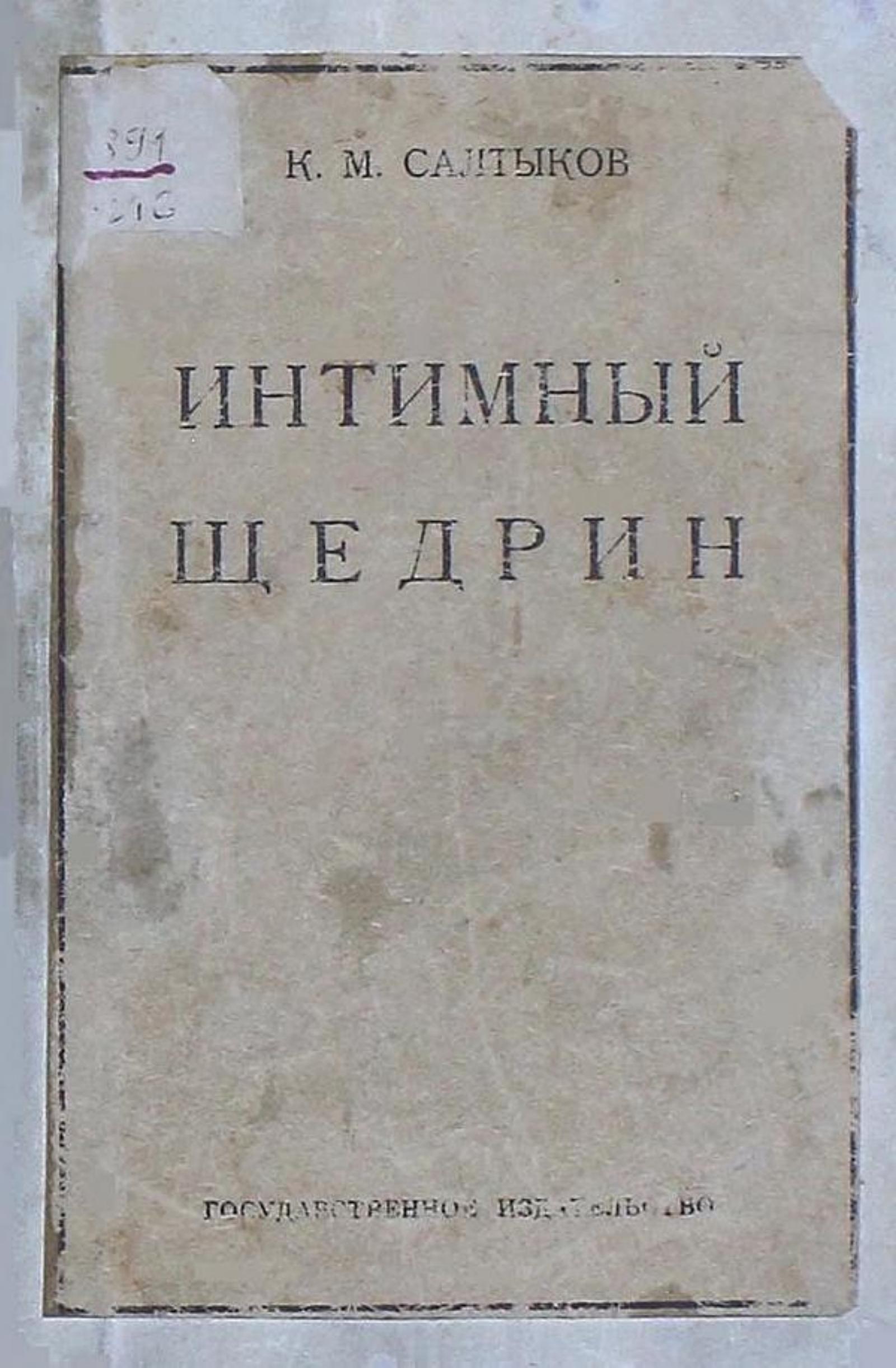 Салтыков, Константин Михайлович. Интимный Щедрин / К. М. Салтыков Предисл.: Н. Мещеряков. — Москва ; Петроград : Гос. изд-во, 1923. — 79 с.; 17 см.