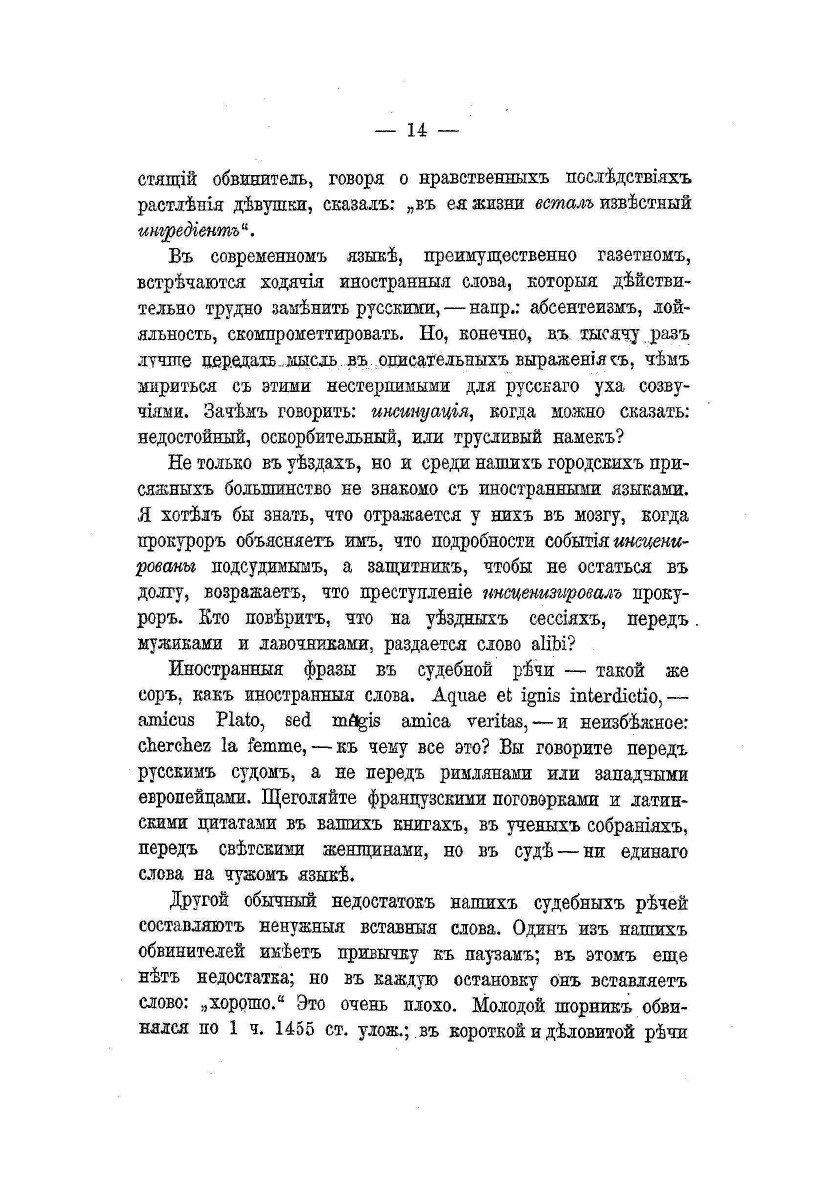 Главная задача книги — это исследование судебного говорения и установление его методов. Книга адресована студентам юридических вузов, а также прокурорам и адвокатам.