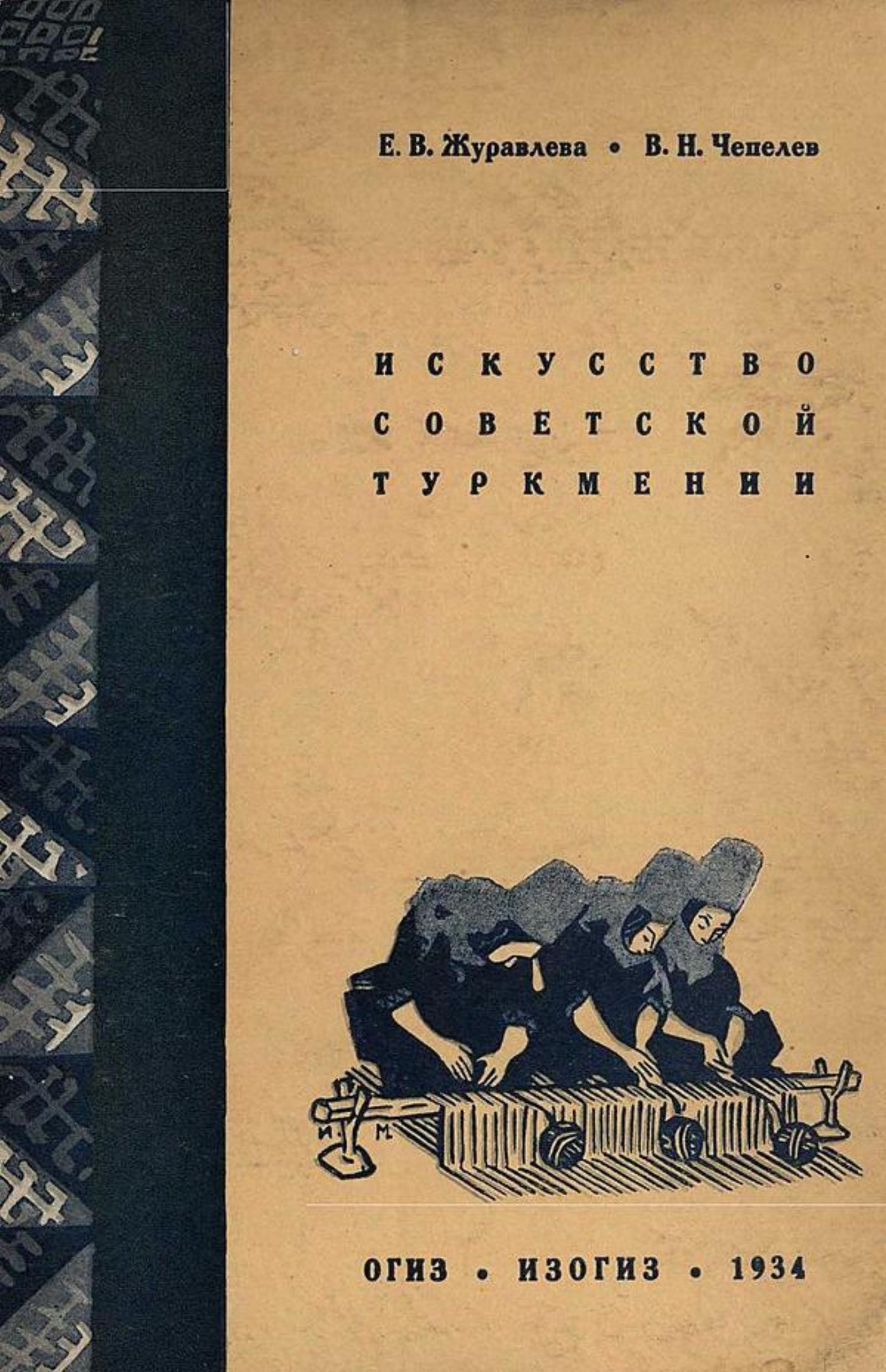 Журавлева, Елизавета Васильевна. Искусство советской Туркмении [Текст]: Очерк развития / Е. В. Журавлева, В. Н. Чепелев; Суп.-обл. и переплет: И. Мазель. — [Москва]; [Ленинград]: Изогиз, 1934 (Л. : тип. им. И. Федорова). — 133, [2] с. : ил.; 22?15 см.