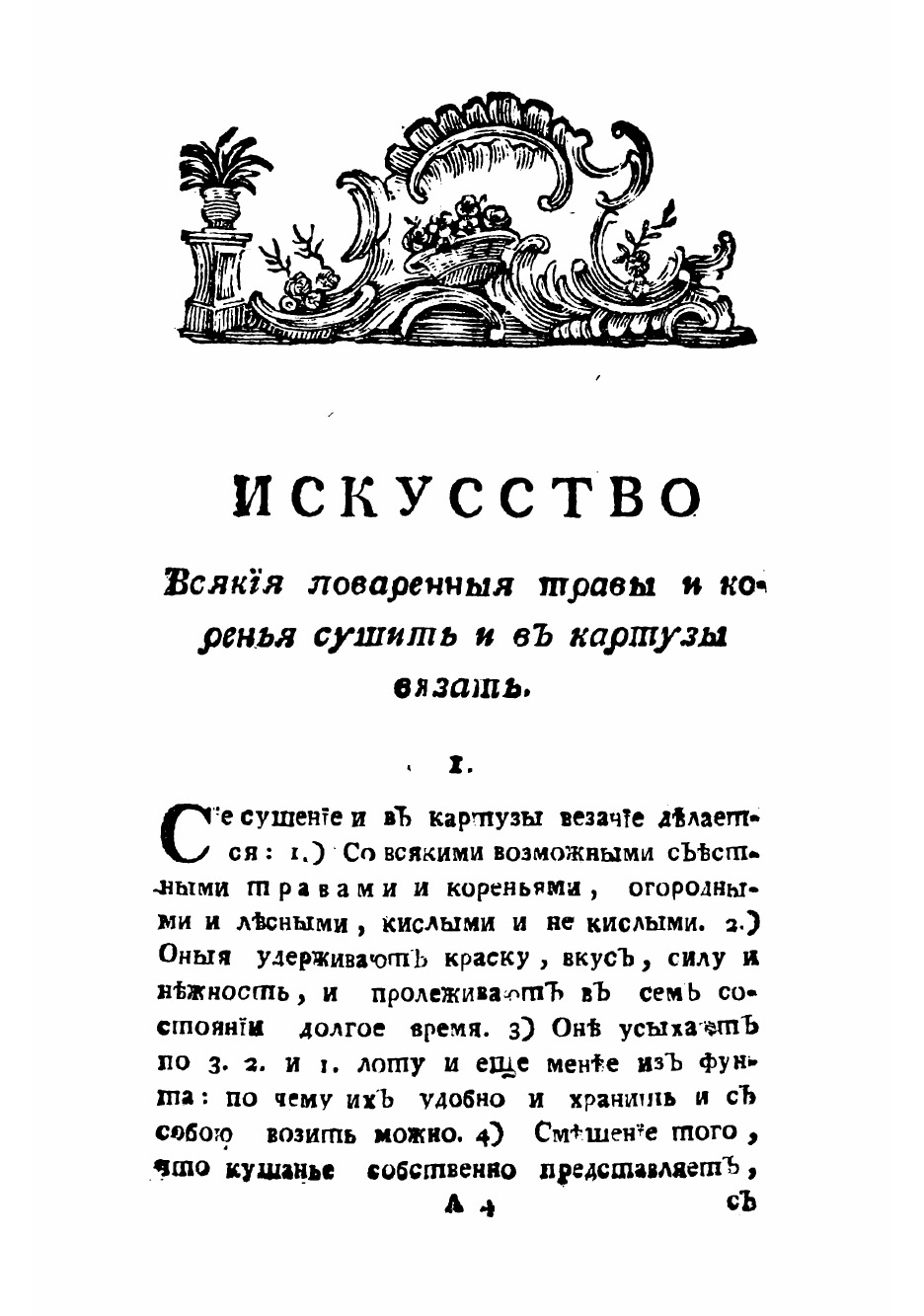 Печатная книга «Искусство всякия поваренныя травы и коренья сушить и в картузы вязать» в мягкой обложке, язык - русский. В книге 36 страниц, она напечатана на белой офсетной бумаге плотностью 80 г/м². Формат издания — 165x235 мм. Все книги аккуратно упаковываем в прочный трёхслойный непрозрачный картонный конверт.