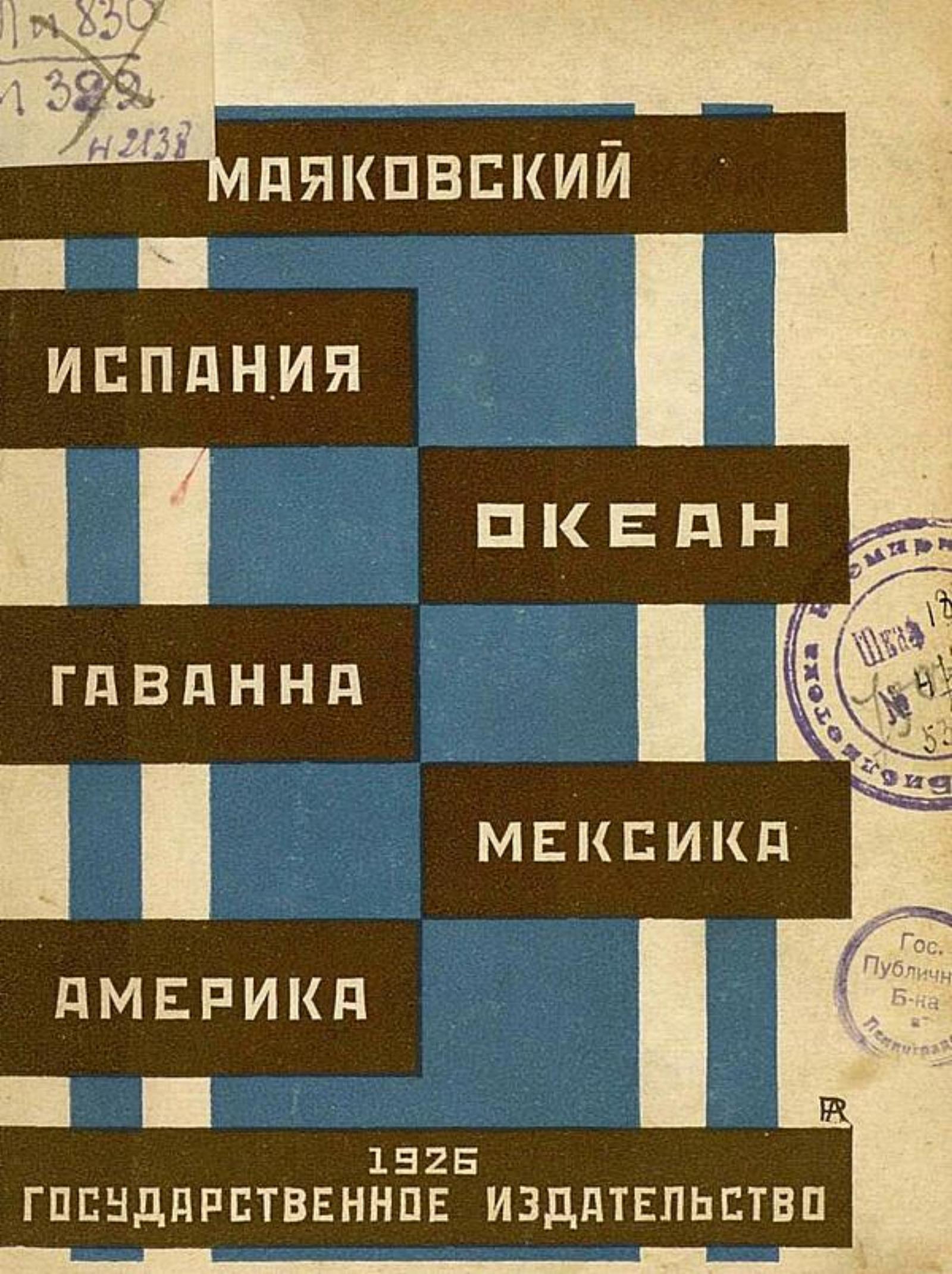 Маяковский В. В. Испания. Океан. Гаванна. Мексика. Америка [Сб. стихотворений] / Владимир Маяковский. — М., Л. : Гос. изд., 1926. — 89, [4] с.; 17 см.