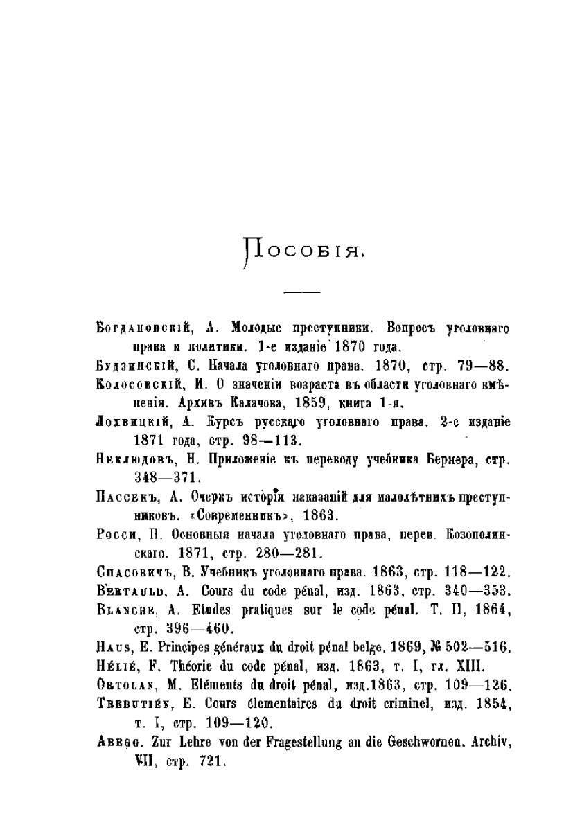 Исследования об ответственности малолетних преступников по русскому праву. Проект законоположений об этом вопросе.