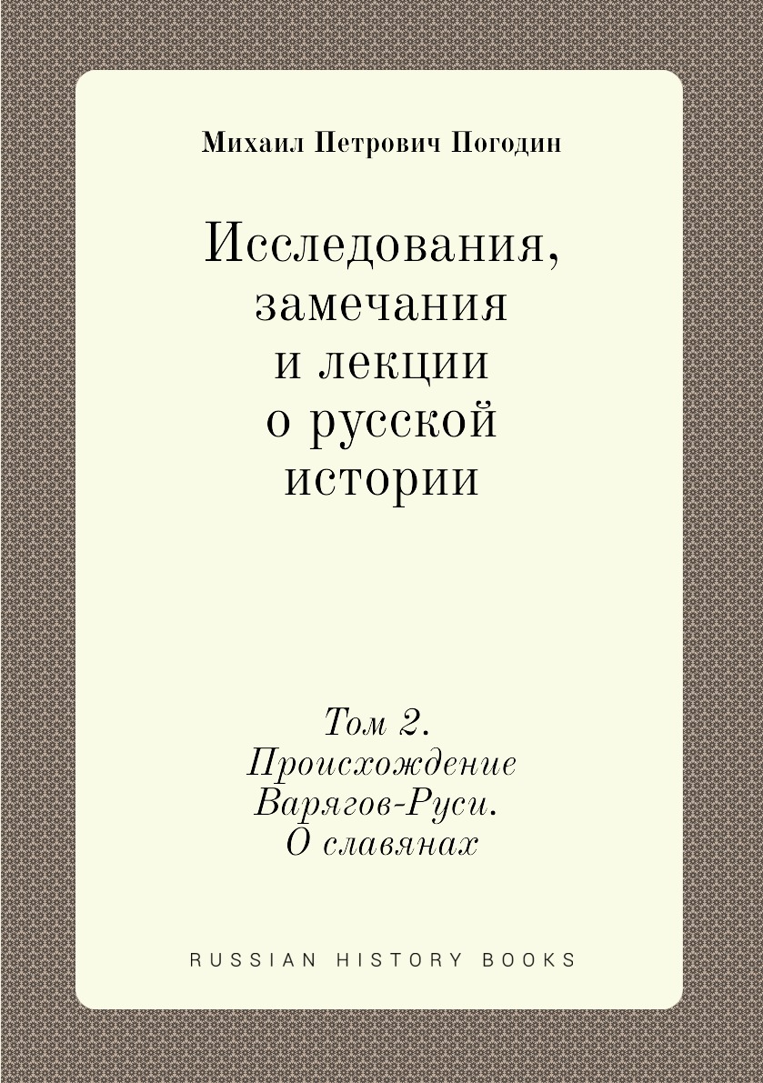 Михаил Петрович Погодин (1800-1875) - русский историк, коллекционер, журналист, писатель, публицист, беллетрист, издатель, профессор Московского университета. Главным делом жизни он считал работу над русской историей.Семитомник «Исследования, замечания и лекции...» является одним из основных трудов Погодина, здесь он предстает зрелым ученым со сформировавшимися методами, приемами работы и имеющим твердые убеждения.