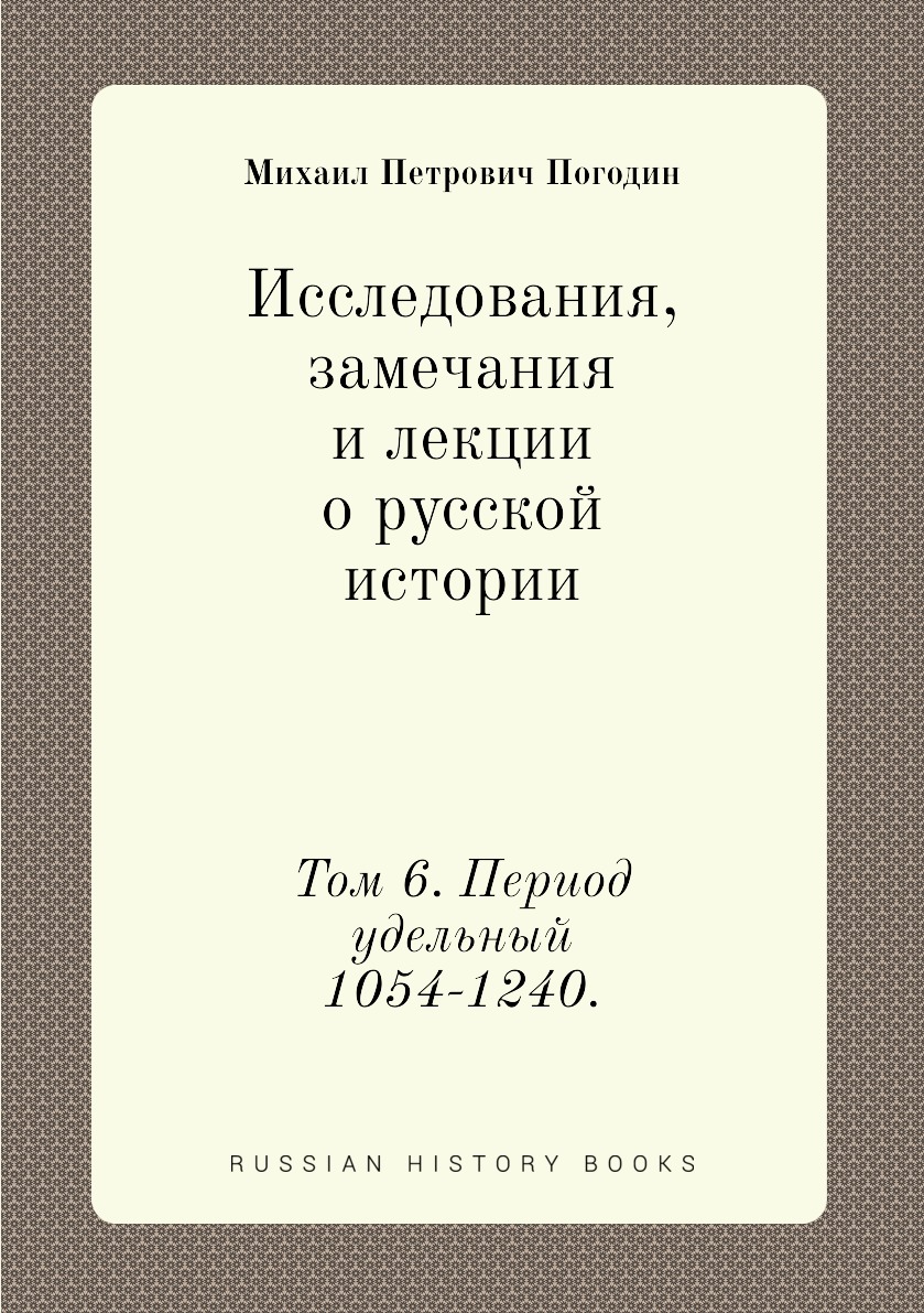 Михаил Петрович Погодин (1800-1875) - русский историк, коллекционер, журналист, писатель, публицист, беллетрист, издатель, профессор Московского университета. Главным делом жизни он считал работу над русской историей.Семитомник «Исследования, замечания и лекции...» является одним из основных трудов Погодина, здесь он предстает зрелым ученым со сформировавшимися методами, приемами работы и имеющим твердые убеждения.