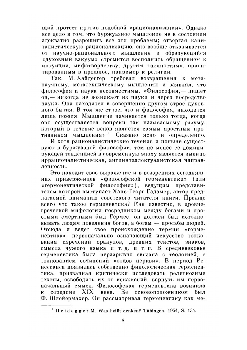 Книга известного западногерманского философа Х.-Г. Гадамера (р. 1900) посвящена одному из распространенных сегодня в западной мысли философских направлений — герменевтике — теории понимания и интерпретации текстов, исторических памятников и феноменов культуры. В ней дается основополагающее для всей современной герменевтики изложение ее истории, систематика принципов и проблем, намечены выходы герменевтики в методологии гуманитарных наук.