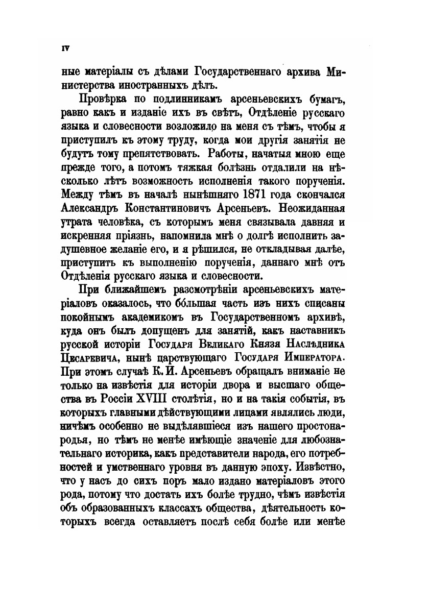 Сборник отделения русского языка и словесности Императорской Академии наук. Том 9. Исторические бумаги, собранные Константином Ивановичем Арсеньевым. Приведены в порядок и изданы академиком П. Пекарским.