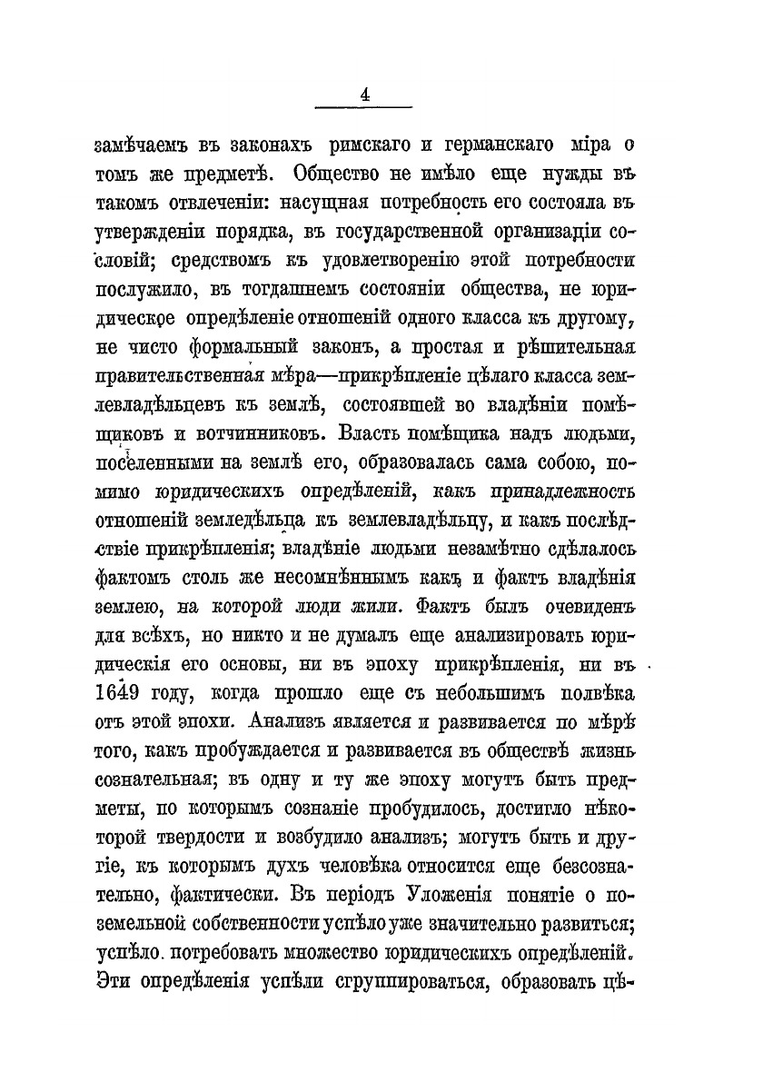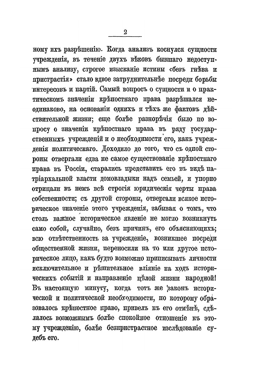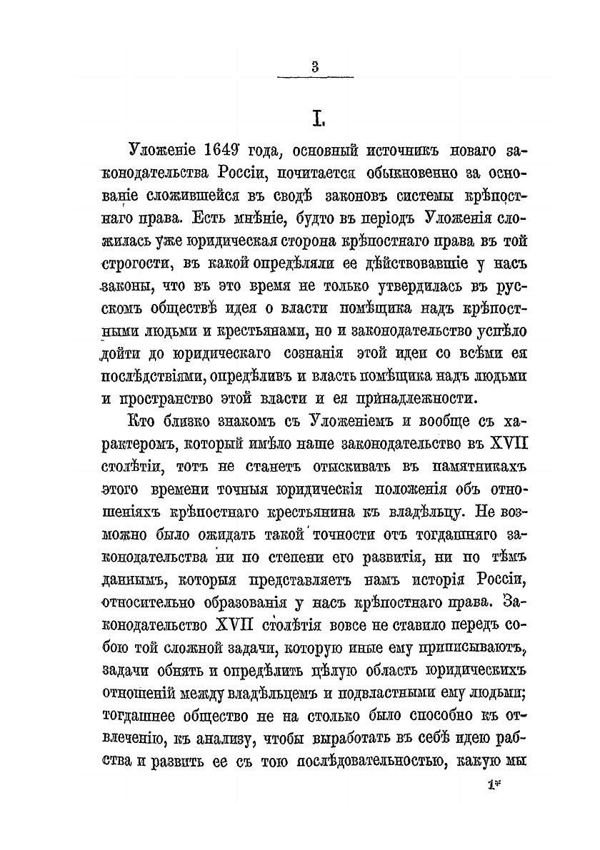 С того времени, как историю перестали у нас считать хронологическим сборником фактов политических, с тех пор как она приняла вид самостоятельного исследования жизни народной и учреждений общественных, и в литературе и в обществе образовались вопросы о происхождении и развитии крепостного права в России.