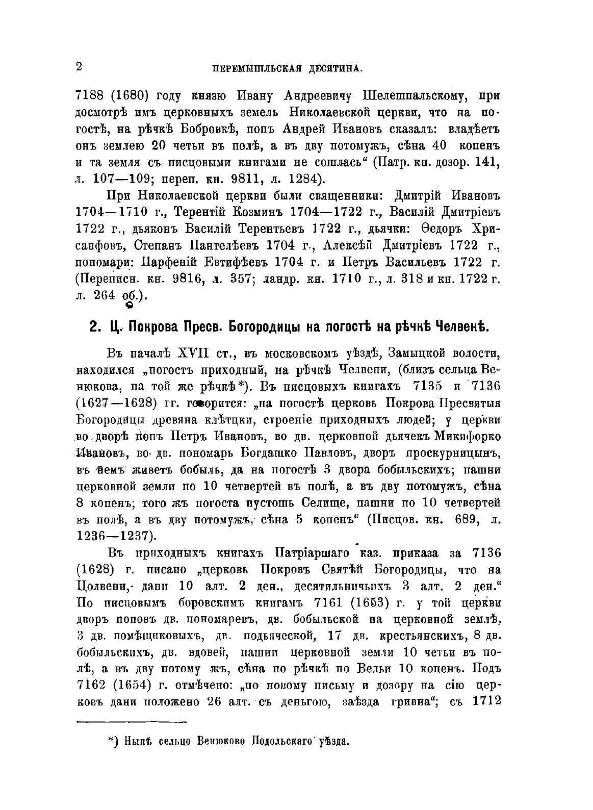 Перемышльская и хотунсая десятины (Московского уезда). Собраны В. Холмогоровым и диаконом Г. Холмогоровым.
