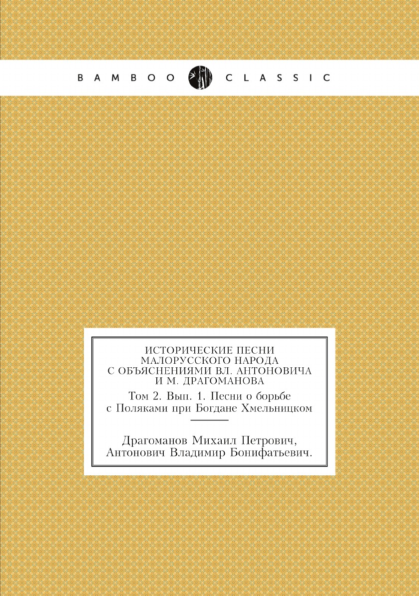 Печатная книга «Исторические песни малорусского народа С объяснениями Вл. Антоновича и М. Драгоманова, Том 2. Вып. 1. Песни о борьбе с Поляками при Богдане Хмельницком» в мягкой обложке, язык - русский. В книге 180 страниц, она напечатана на белой офсетной бумаге плотностью 80 г/м². Формат издания — 148x210 мм. Все книги аккуратно упаковываем в прочный трёхслойный непрозрачный картонный конверт.