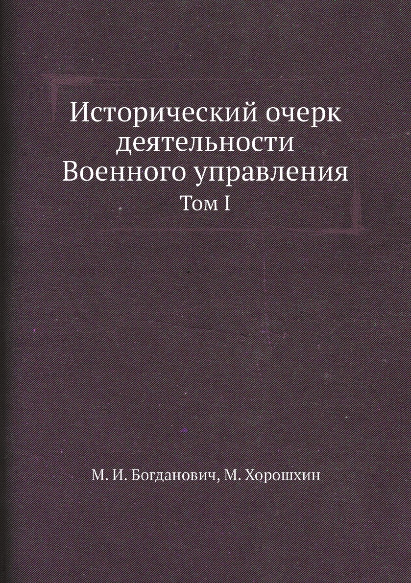 Исторический очерк деятельности Военного управления в России в первое двадцатипятилетие благополучного царствования государя императора Александра Николаевича (1855-1880 годы). Составлен генерал-майором Максимовским и полковником Хорошиным, под руководством генерал-лейтенанта Богдановича.