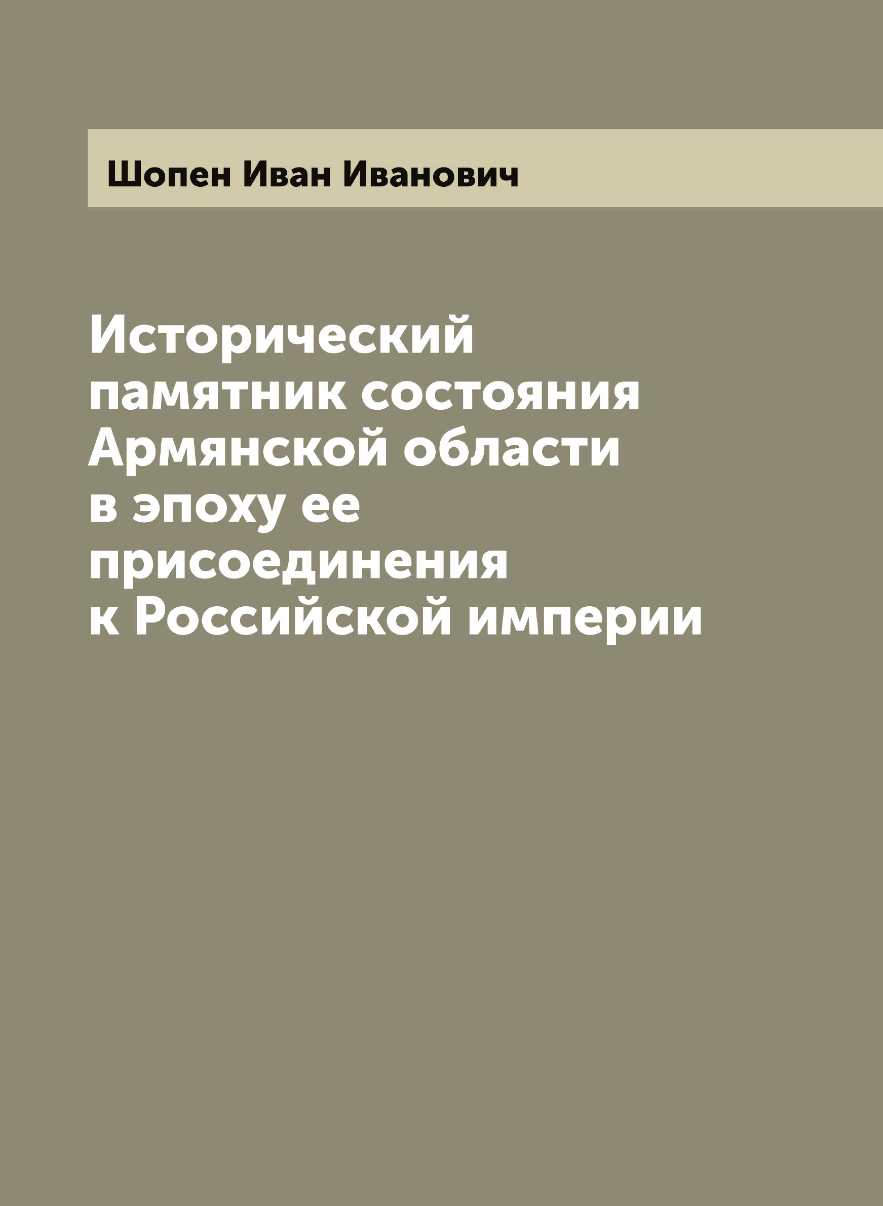 Печатная книга «Исторический памятник состояния Армянской области в эпоху ее присоединения к Российской империи» в мягкой обложке, язык - русский. В книге 634 страниц, она напечатана на белой офсетной бумаге плотностью 80 г/м². Формат издания — 205x280 мм. Все книги аккуратно упаковываем в прочный трёхслойный непрозрачный картонный конверт.