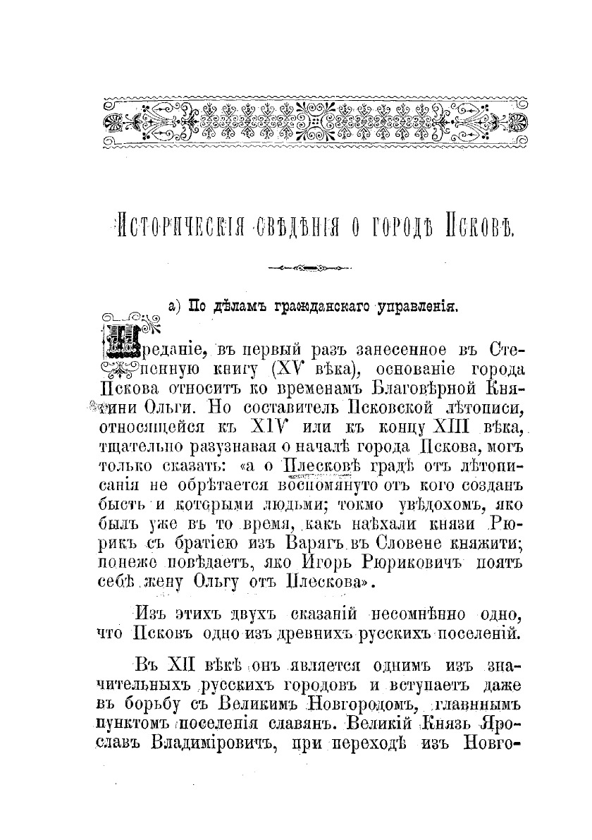 История Пскова в полном объеме ожидает еще своего деятеля. В виду того, что «История княжества Псковского» стала уже библиографической редкостью, да к тому же Псков после выхода ее имел свою историю, - для знакомства с ней был составлен, по поручению статистического комитета, историко-статистический очерк Пскова.