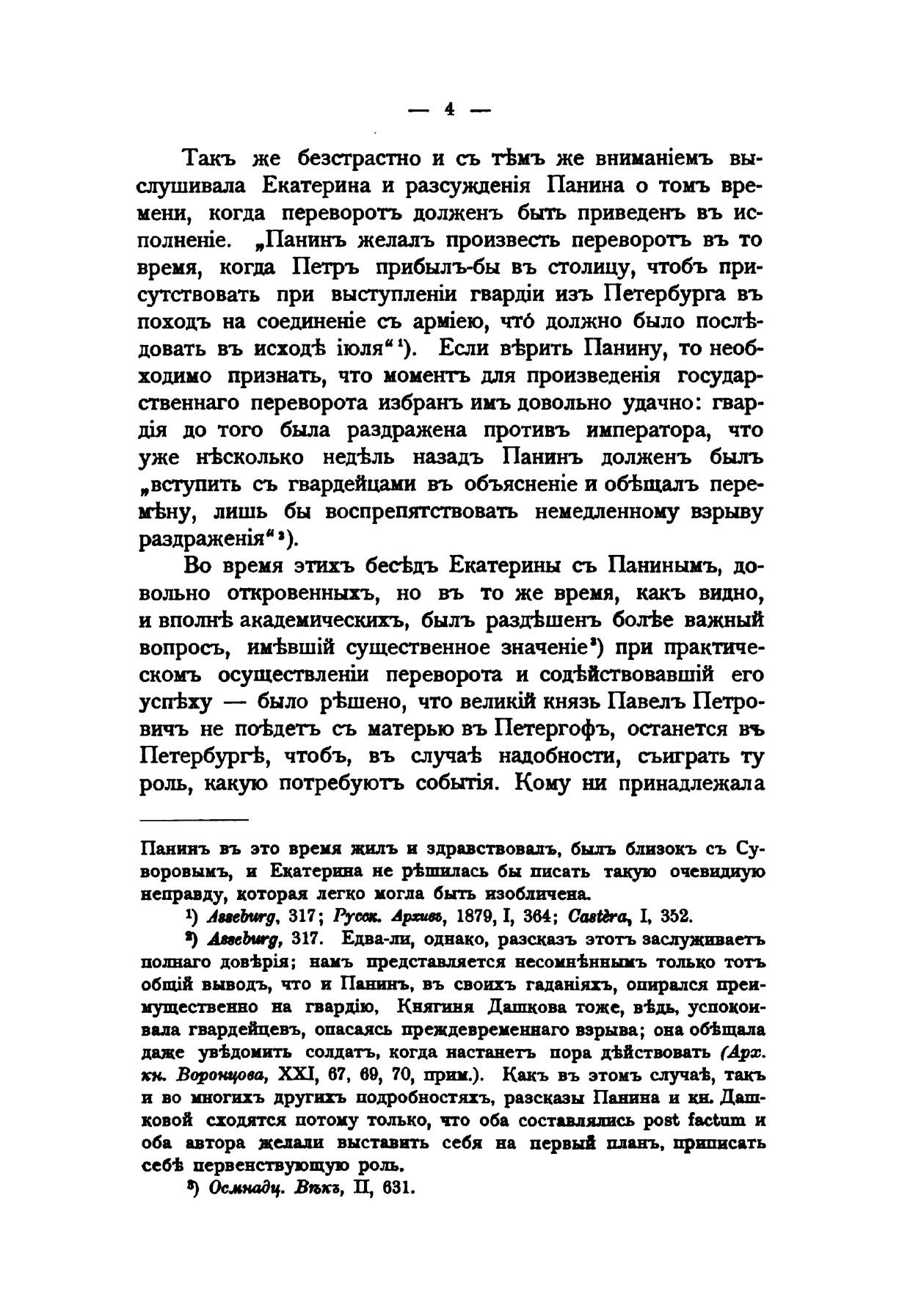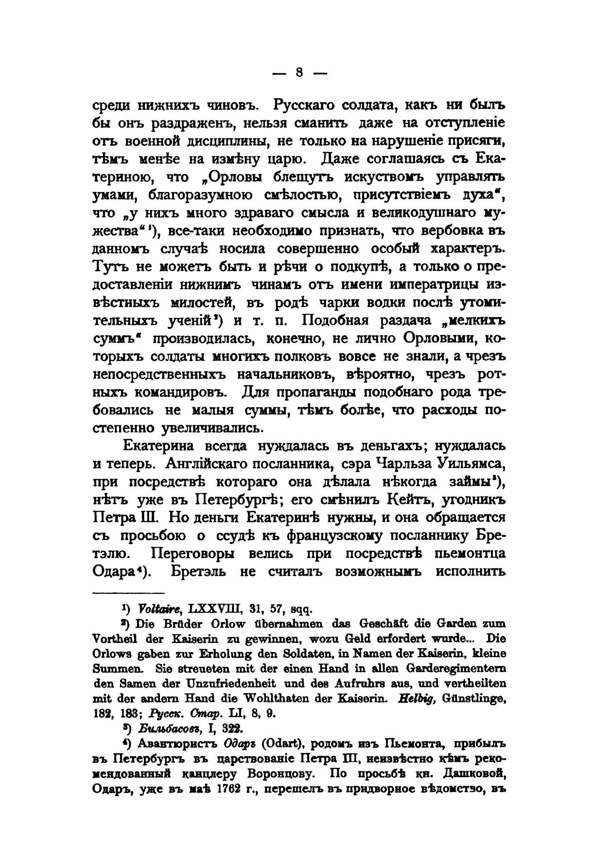 Историк и журналист, В. А. Бильбасов посвятил истории Екатерины II, весь остаток своей жизни, после того как правительство в 1883 закрыло «за вредное направление» знаменитую газету «Голос», которую он редактировал 12 лет. Собранные историком материалы позволили представить русскому обществу образ Екатерины-женщины, совершенно отличный от расхожих апокрифических сказаний, порожденных долгим запретом на доступ к личным документам императрицы. Первый том книги, вышел из печати в 1890 г. и был сразу высок оценен историками и читающей публикой. Однако второй том (1891 г.) был изъят из продажи и уничтожен цензурой по личному указанию Александра III Гнев императора вызвали опубликованные Бильбасовым материалы о перевороте 1762 г. и гибели свергнутого с престола Петра III. Несмотря на то, что Бильбасов, используя все доступные отечественные и зарубежные источники, доказывал невиновность Екатерины в смерти мужа, раскрытие многих подробностей жизни императорской фамилии было сочтено неподобающим. Автору пришлось пойти на значительные сокращения и изъятия из своего труда, чтобы книга увидела свет. В последующий годы читательский интерес к запрещенной книге не ослабевал. И наконец, в 1900 году труд Бильбасова был издан в Берлине на русском языке в полной авторской редакции без цензурных пропусков.