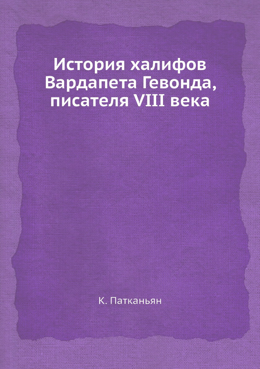 Исторiя Xалифовъ Вардапета Гевонда, писателя VIII вѣкаКеропэ Петрович Патканов (Патканьян, 1834 - 1889) - ориенталист, специалист по армянским историческим источникам, армянской филологии и литературе. Учился в Лазаревском институте восточных языков и в педагогическом институте; был сначала преподавателем, потом профессором Санкт-Петербургского университета; в 1863 году получил степень магистра восточной словесности за диссертацию «Опыт истории династии Сасанидов по сведениям армянских источников», в 1864 году — степень доктора армянской словесности за «Исследование о составе армянского языка».