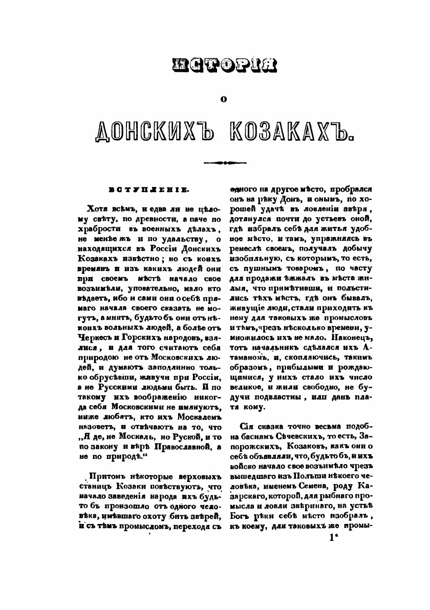 Уйдя в отставку после славных военных и государственных дел, генерал-майор А.И. Ригельман с энтузиазмом занялся историческими исследованиями. Прожив много лет бок о бок с казаками, он посвятил несколько работ казацкой старине. Написанная за 30 лет до Карамзина «История о донских казаках», в которой исторические факты причудливо сочетаются с легендами и преданиями, остается примечательным памятником русской историографии XVIII века.