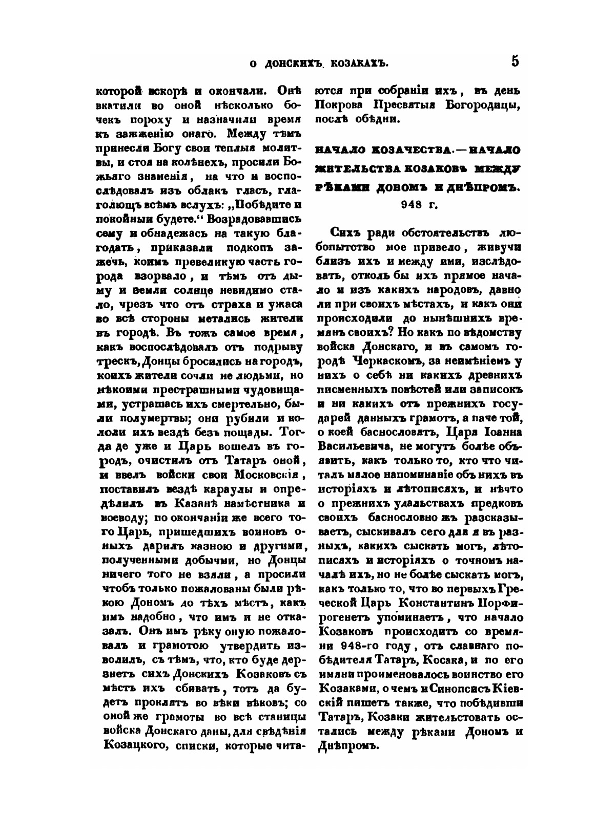 Отколь и когда они начало свое имеют, и в какое время и из каких людей на Дону поселились, какия их были дела и чем прославились и проч.