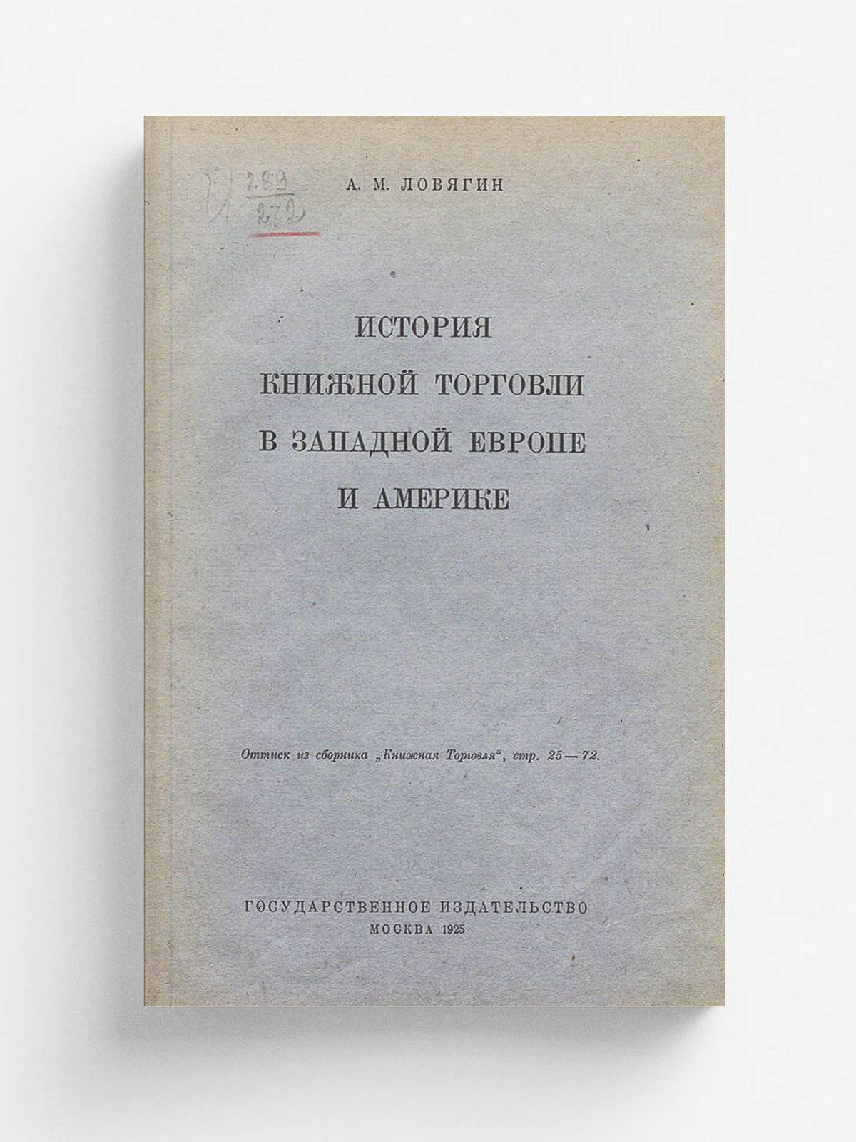 Ловягин, Александр Михайлович. История книжной торговли в Западной Европе и Америке / А. М. Ловягин. — Москва : Гос. изд-во, 1925. — Обл., [48] с.; 24 см.