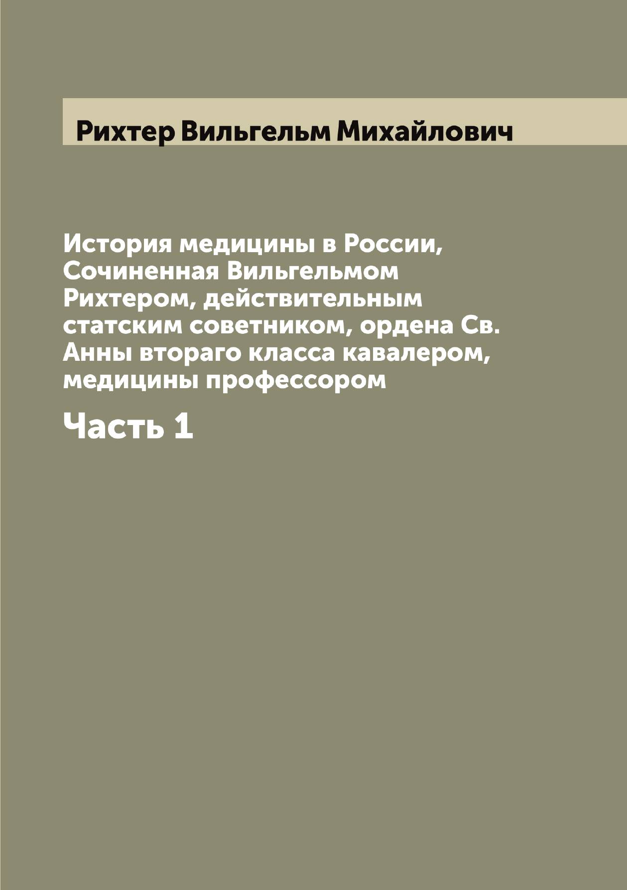 Печатная книга «История медицины в России, Сочиненная Вильгельмом Рихтером, действительным статским советником, ордена Св. Анны втораго класса кавалером, медицины профессором, Часть 1» в мягкой обложке, язык - русский. В книге 462 страниц, она напечатана на белой офсетной бумаге плотностью 80 г/м². Формат издания — 148x210 мм. Все книги аккуратно упаковываем в прочный трёхслойный непрозрачный картонный конверт.