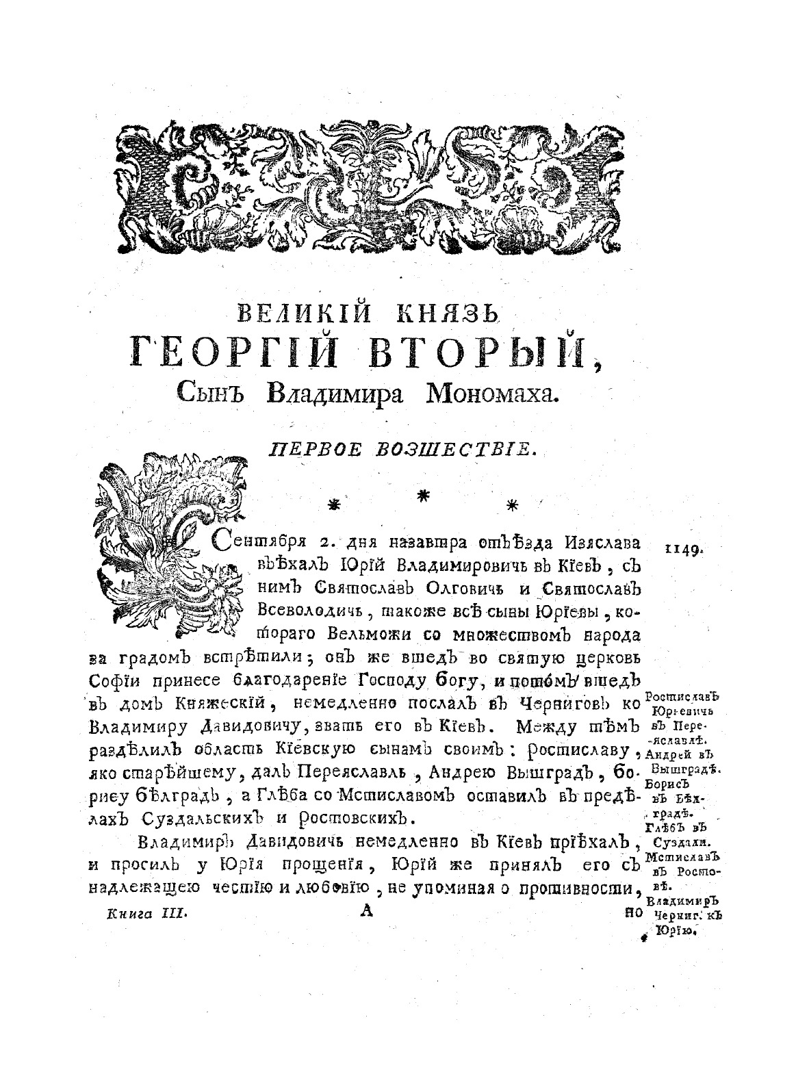 История российская с самых древнейших времен неусыпными трудами через тридцать лет собранная и описанная Покойным Тайным Советником и Астраханским Губернатором, Василием Никитичем Татищевым. Книга третья.