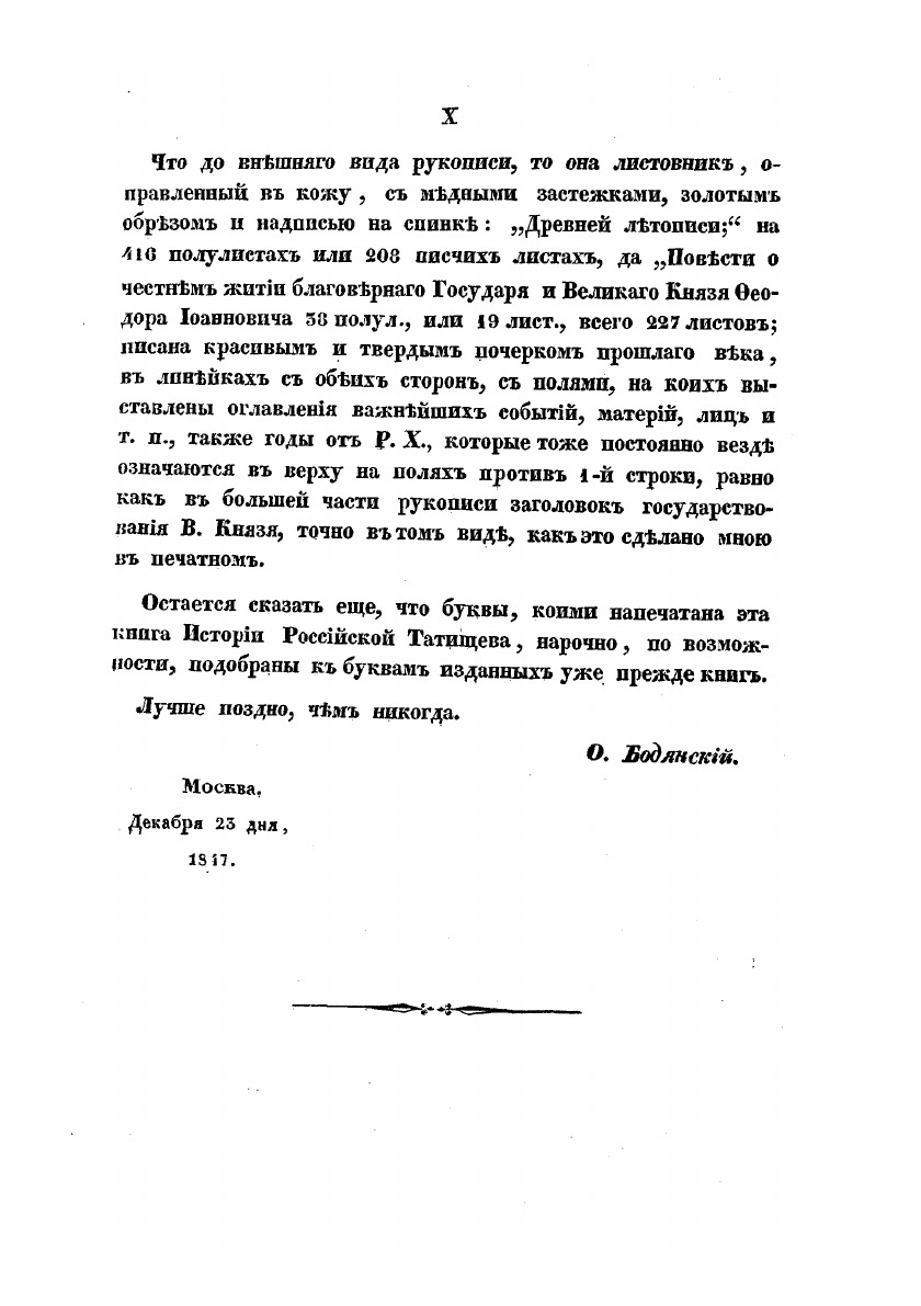 История российская с самых древнейших времен. Неусыпными трудами через тридцать лет собранная и описанная покойным тайным советником и астраханским губернатором, Василием Никитичем Татищевым. Книга 5-я, или по сочинителю часть 4-я древней летописи русской. Издание и предисловие ординарного профессора О. М. Бодянского.