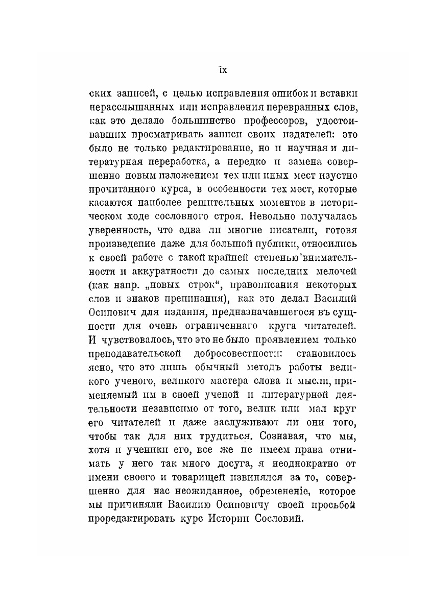 Василий Осипович Ключевский (1841 - 1911) - знаменитый русский историк. Занимаясь исследованием русской истории, Ключевский уделял большое внимание экономическим проблемам, способам хозяйственной деятельности разных слоев общества.В труде "История сословий в России" В.О.Ключевского дается обзор и анализ исторических процессов, создававших и видоизменявших сословный строй в России в период с IX до конца XVIII вв. В книгу вошел курс лекций "История Сословий в России", прочитанный профессором в Московском Университете в осеннем полугодии 1886 г.