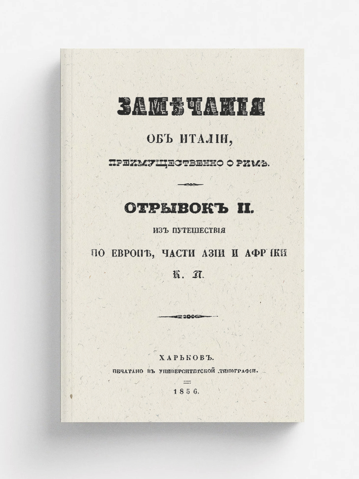 Эта книга — репринт оригинального издания (издательство "Университетская типография Харькова", 1856 год), созданный на основе электронной копии высокого разрешения, которую очистили и обработали вручную, сохранив структуру и орфографию оригинального издания. Редкие, забытые и малоизвестные книги, изданные с петровских времен до наших дней, вновь доступны в виде печатных книг.