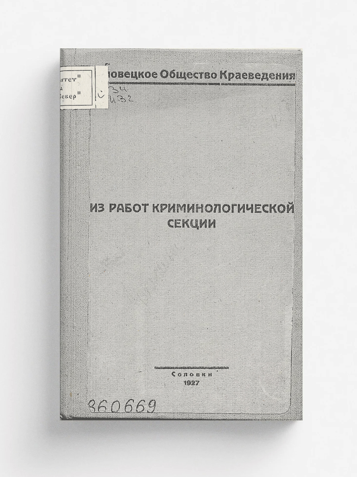 Соловецкое общество краеведения. Криминологическая секция. Из работ криминологической секции. — Соловки : [Бюро печати Услон], 1927. — 149 с., [15] с. табл.; 26 см. — (Материалы/ Соловецкое о-во краеведения; Вып. 17).