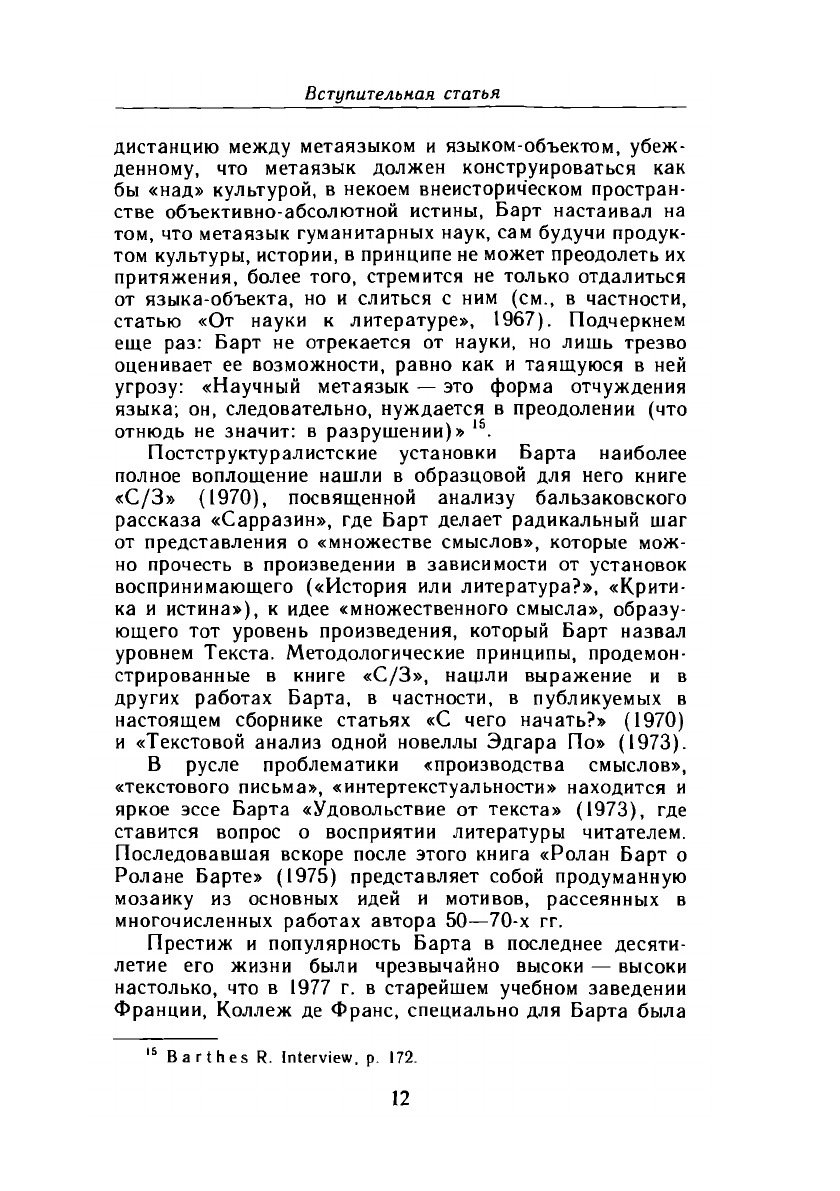 В сборник избранных работ известного французского литературоведа и семиолога Р. Барта (1915—1980) вошли статьи и эссе, отражающие разные периоды его научной деятельности. Исследования Р. Барта — главы французской «новой критики», разрабатывавшего наряду с Кл. Леви-Строссом, Ж. Лаканом, М. Фуко и др. структуралистскую методологию в гуманитарных науках, посвящены проблемам семиотики культуры и литературы. Среди культурологических работ Р. Барта читатель найдет впервые публикуемые в русском переводе «Мифологии», «Смерть автора», «Удовольствие от текста», «Война языков», «О Расине» и др. Книга предназначена для семиологов, литературоведов, лингвистов, философов, историков, искусствоведов, а также всех интересующихся проблемами теории культуры.