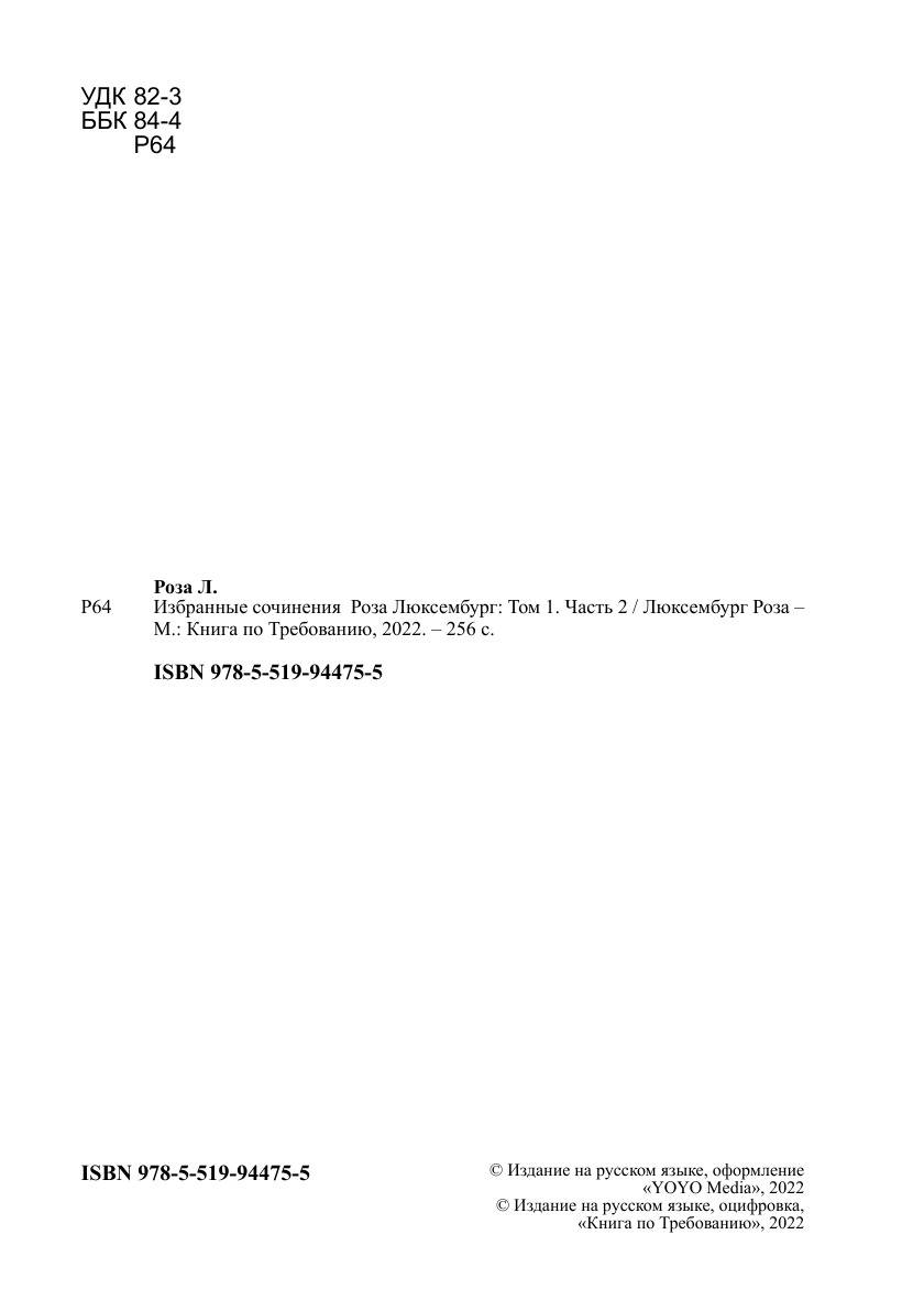 Печатная книга «Избранные сочинения Роза Люксембург, Том 1. Часть 2» в мягкой обложке, язык - русский. В книге 256 страниц, она напечатана на белой офсетной бумаге плотностью 80 г/м². Формат издания — 148x210 мм. Все книги аккуратно упаковываем в прочный трёхслойный непрозрачный картонный конверт.