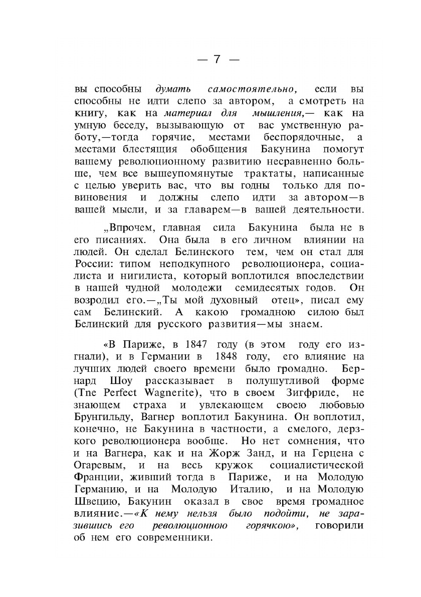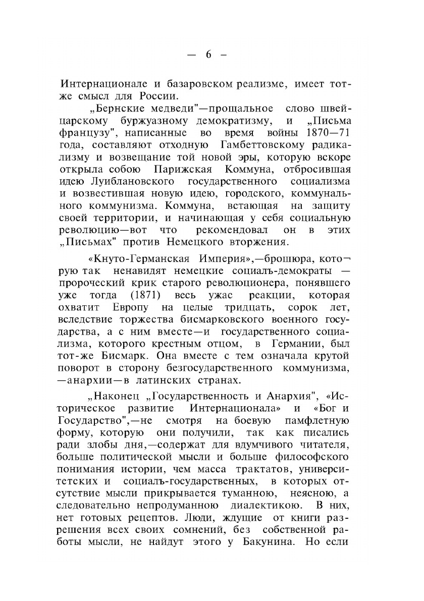 Политически и философски прекрасно образованный, обладая в высшей степени ясным и увлекательным изложением, М.А. Бакунин оставил по смерти такое количество рукописей по вопросам социальным, политическим и философским, что полное собрание его сочинений на французском языке, изданное под редакцией Джемса Гильома составило шесть томов, хотя его знаменитые письма к испанской, итальянской и другим федерациям и к деятелям Интернационала еще не изданы.