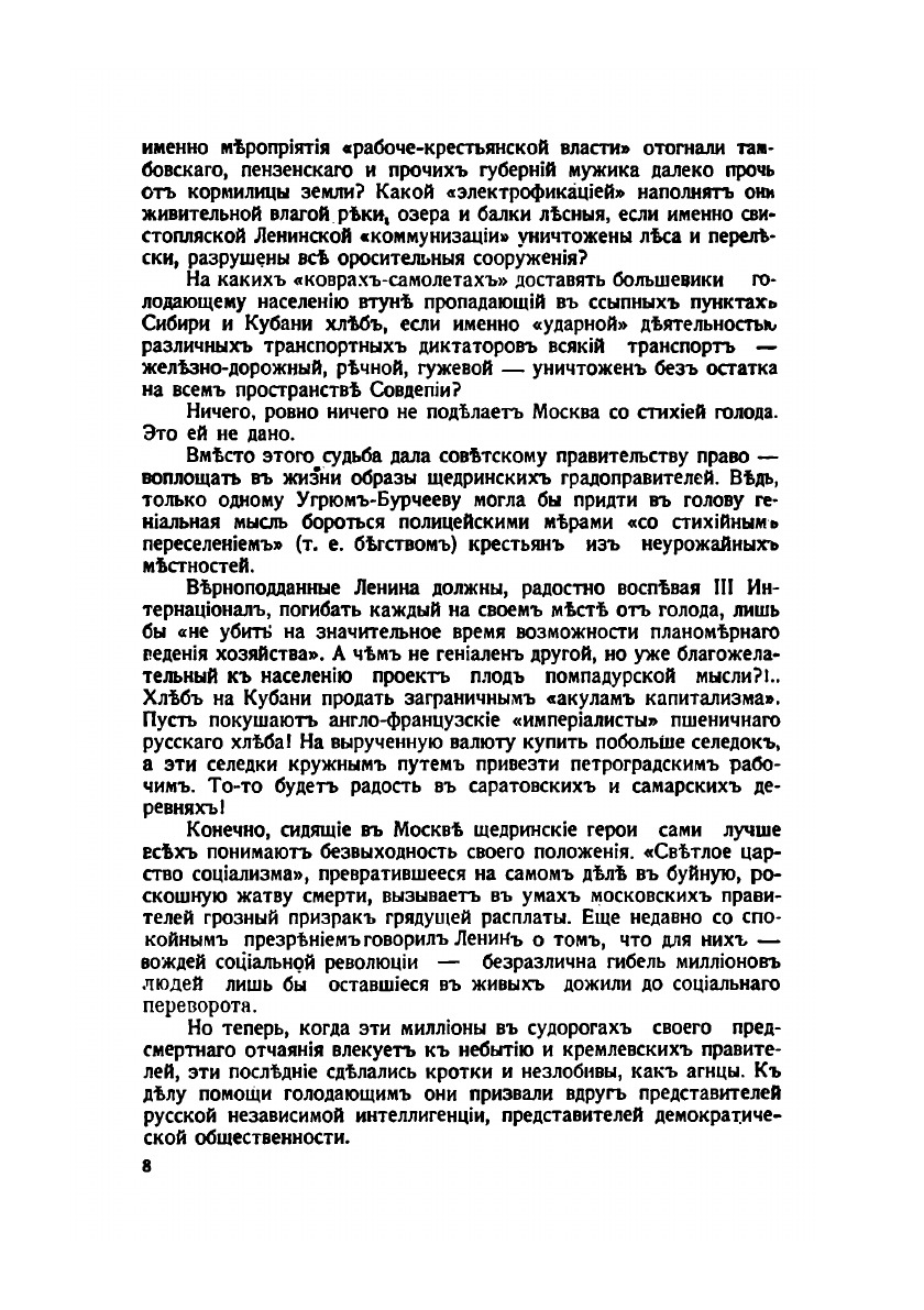От автора: "Три с половиной года приходилось мне издалека, прислушиваясь к России, отстаивать на страницах иностранной и зарубежной русской печати жизненнейшие интересы Родины, утверждая вместе с тем великую, непреходящую ценность достижений Февральской революци и вскрывая перед общественным мнением глубоко реакционную сущность не только генеральского, но и большевистского самовластия. Писать приходилось урывками, в водовороте стремительно мчавшихся событий послевоенной эпохи, не имея возможности остановиться, как следует, ни на одном из выдвигавшихся жизнью вопросов. А, с другой стороны, общественное сознание, отравленное насилиями и кровью жестокой войны, с какой-то болезненной легкостью внимая до грубости упрощенным, человеконенавистническим лозунгам двуликой, но по существу единой реакции, казалось не могло или не хотело прислушаться к третьему голосу, вдуматься в доводы третьего мнения.Теперь, мне кажется, эти настроения проходят. Люди все внимательнее начинают всматриваться во всю сложность окружающей действительности и все напряженнее искать выхода. Вообще, по-моему, в ходе российских послереволюционных событий завершился еще один этап большевистской реакции. Готовясь вступить в период нового социального и политического строительства, нужно с возможно большей определенностью и точностью представлять себе вчерашний день."