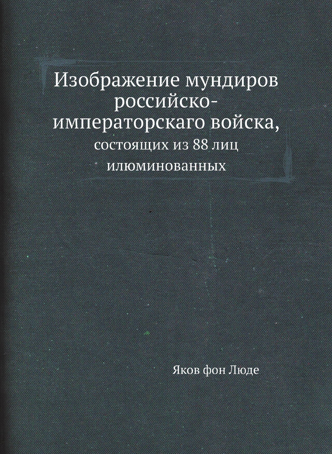 Печатная книга «Изображение мундиров российско-императорскаго войска,, состоящих из 88 лиц илюминованных» в мягкой обложке, язык - русский. В книге 100 страниц, она напечатана на белой офсетной бумаге плотностью 80 г/м². Формат издания — 205x280 мм. Все книги аккуратно упаковываем в прочный трёхслойный непрозрачный картонный конверт.