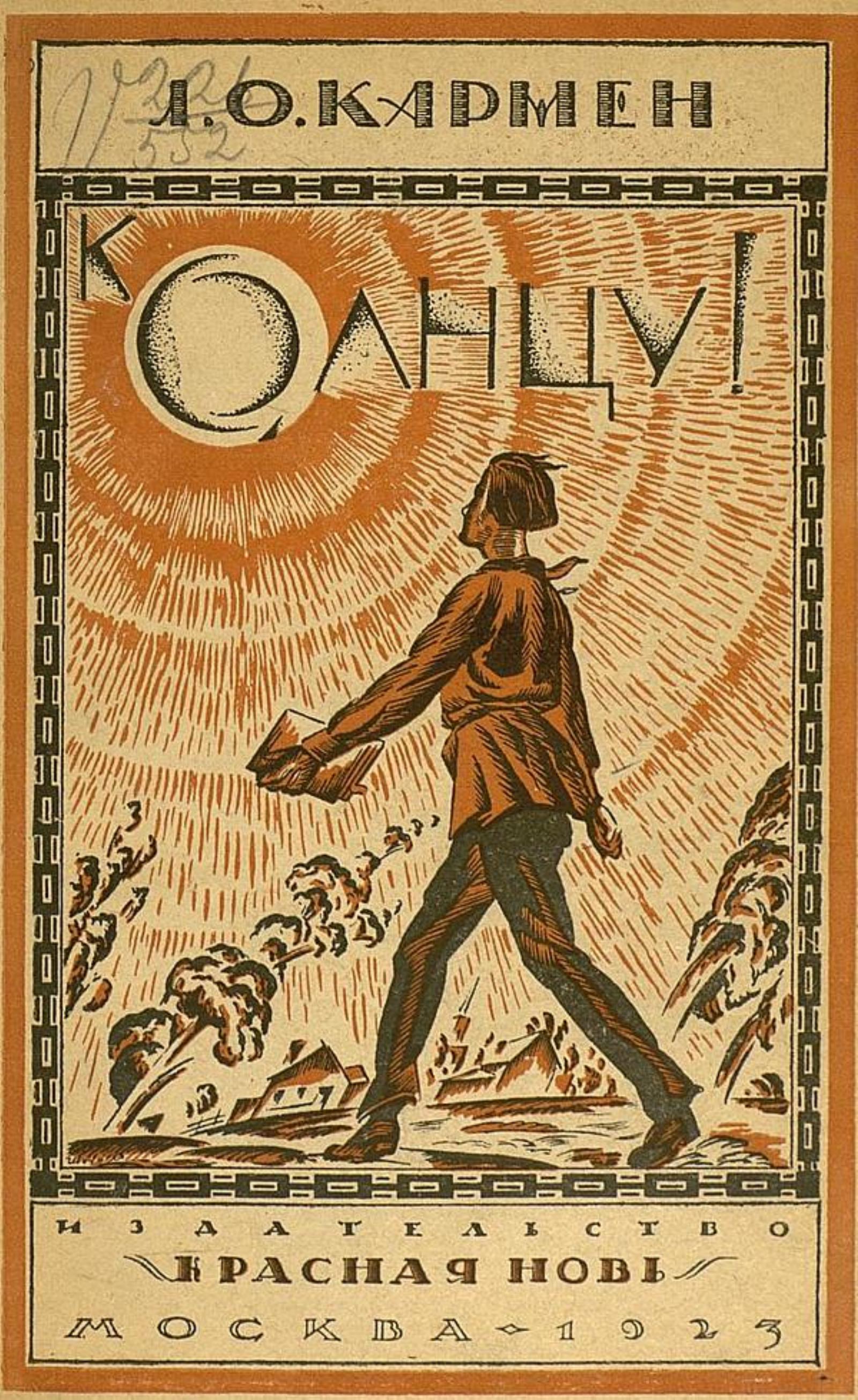 Кармен, Лазарь Осипович (1876–1920). К солнцу : рассказы / Л. О. Кармен. — Москва : Красная Новь, 1923. — 112, [1] с. : цв. ил.; 21 см.