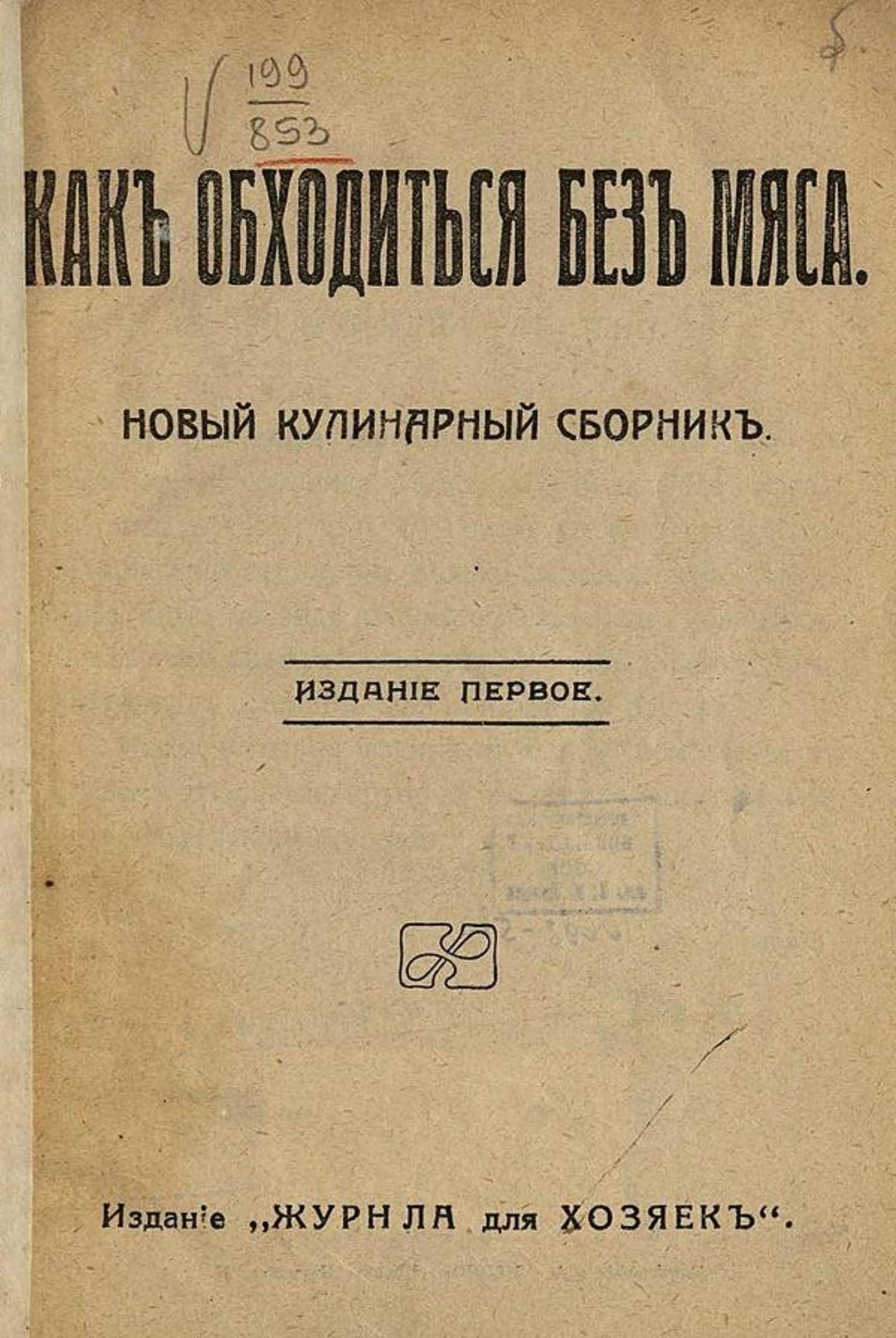 Как обходиться без мяса? : новый кулинарный сборник. — 1-е изд. — Москва : Журн. для хозяек, [1917]. — 192 с.; 19 см.