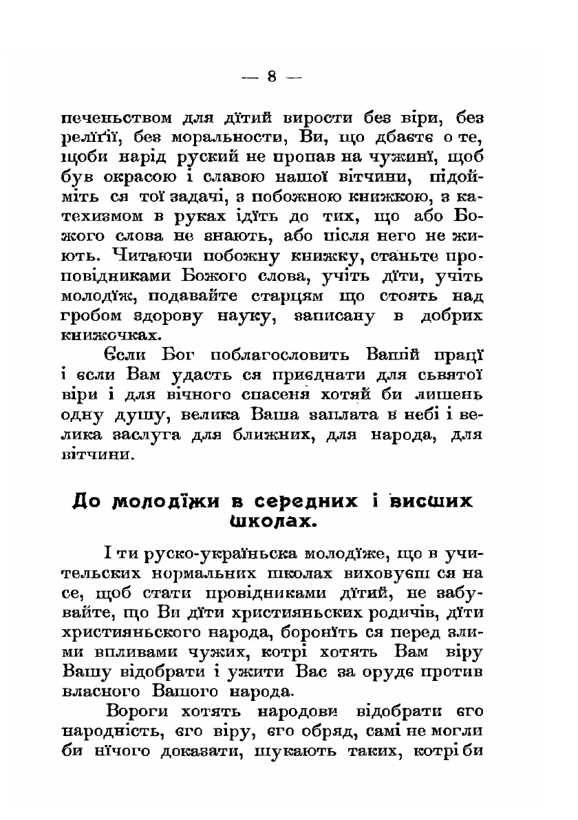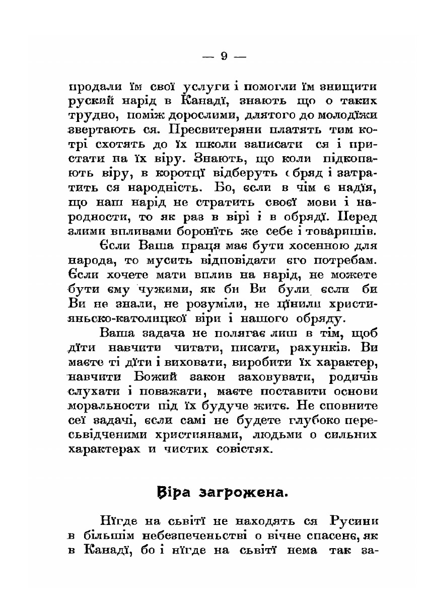 Канадийским русинам. Брошюра униатского митрополита Андрея Шептицкого, в которой он призывает держаться римской церкви.
