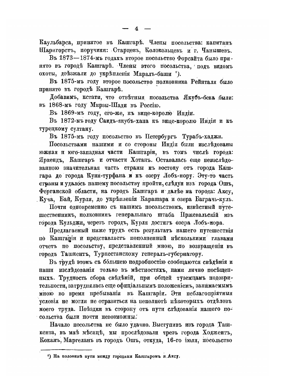 Алексей Николаевич Куропаткин (1848-1925) – генерал от инфантерии, генерал-адъютант, военный министр, член Госсовета. Кашгария - область на западе Китая, названа по имени столицы и реки, на берегу которой столица находилась. Кашгар расположен там, где сходятся отроги Тянь-Шаня и Куньлуня, у подножия Памирских гор. Земля здесь очень плодородная, производит не только злаки, но и хлопок, а также различные фрукты. Кашгарские ковры пользуются спросом по всему миру. В окрестностях города ведется добыча медной руды. В средние века Кашгар был важнейшим пунктом на Шелковом пути. В 1755 г. он попал под власть китайских правителей. В 1862 г. мусульманское население Кашгарии восстало против китайского владычества, а Магомет Якуб-бек разместил здесь столицу своих владений. Экспедиция А.Н.Куропаткина как раз пришлась на конец правления Магомет Якуб-бека и смуту, начавшуюся после его смерти. Описана история и этнография Кашгарии, ее политическое, военное и торгово-промышленное положение, исследование направлено на выявление геостратегического значения области для России и возможностей распространения там русского влияния.