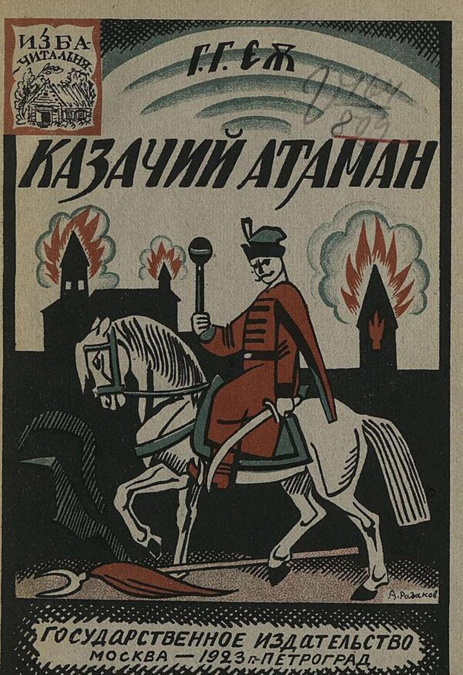 Еж, Теодор Томаш. Казачий атаман : Роман / Т. Т. Еж ; В перераб. В. А. Азова. — Москва ; Петроград : Гос. изд-во, [1923] (Пг. : тип. труд. артели им. первопечатника Федорова). — 108, [1] с. : ил.; 21 см. — (Изба-читальня).