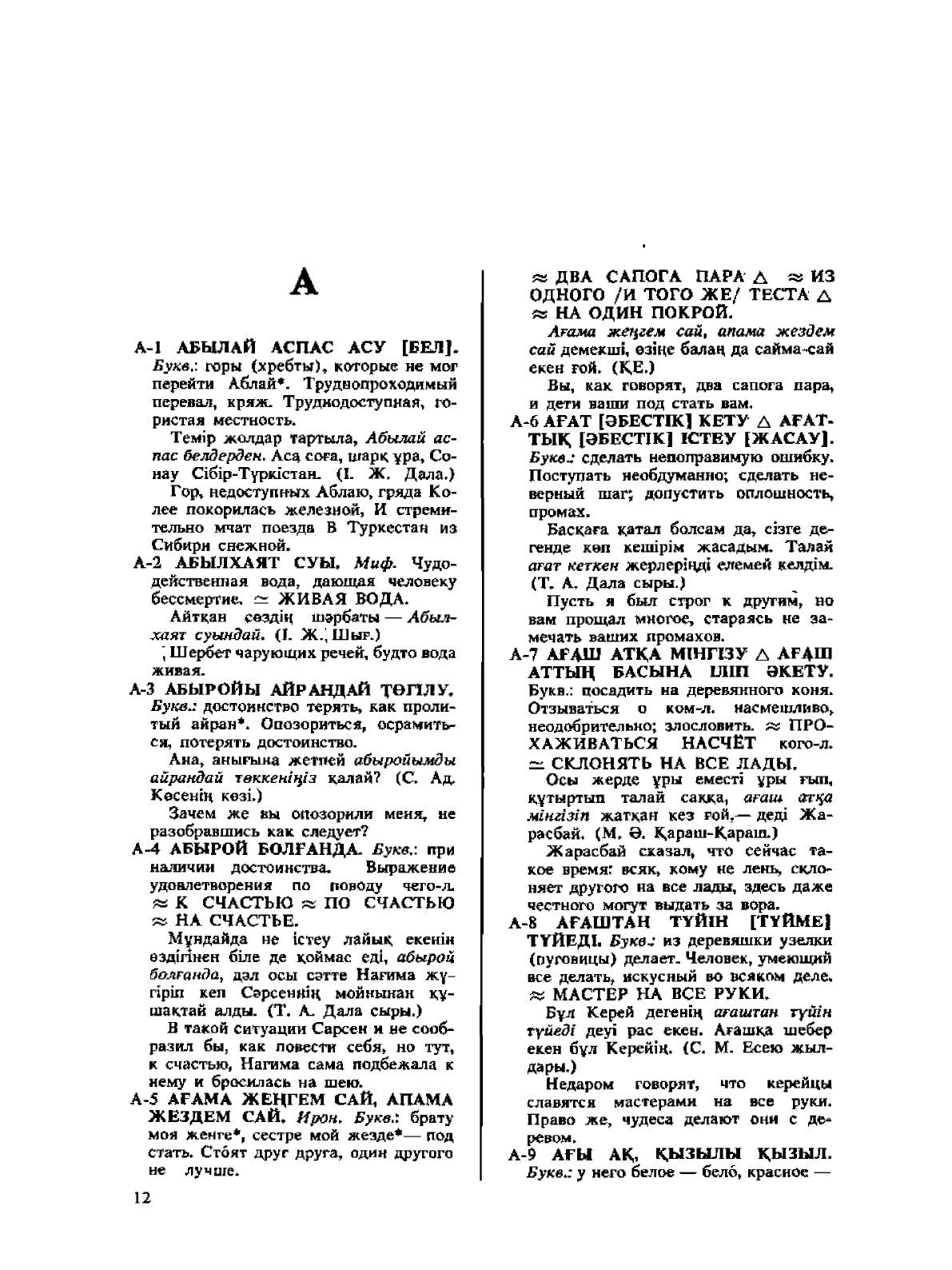 Казахско- русский фразеологический словарь содержит более 2300 фразеологических единиц и их вариантов.Рассчитан на научных работников, преподавателей, журналистов и самостоятельно изучающих казахский язык.