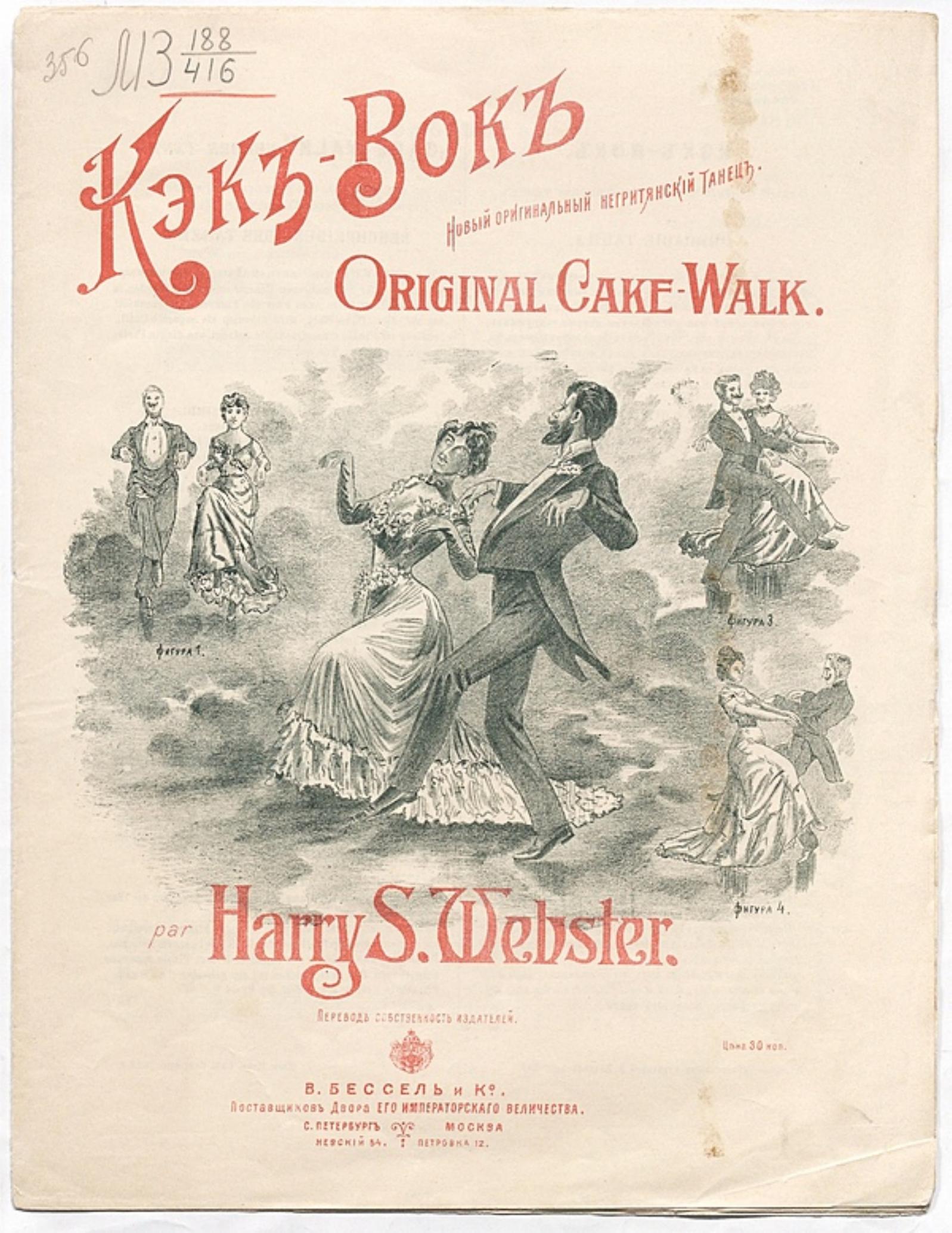 Уэбстер, Гарри С. Кэк-Вок : Новый оригинальный негритянский танец: Для ф.-п. / Par Harry S. Webster. — СПб. : Бессель и К°, ценз. 1903. — 6 с.