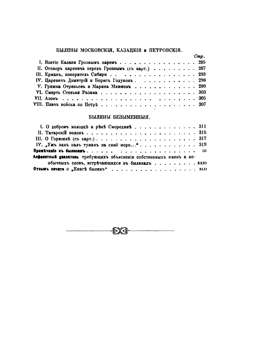 Свод избранных образцов русской народной эпической поэзии (новое издание "Книги о киевских богатырях", дополненное былинами новгородскими, московскими, казацкими, петровскими и безымянными) с портретом певца былин Рябинина работы Л. А. Серякова. Составил В.П. Авенариус.