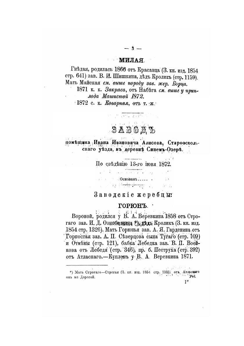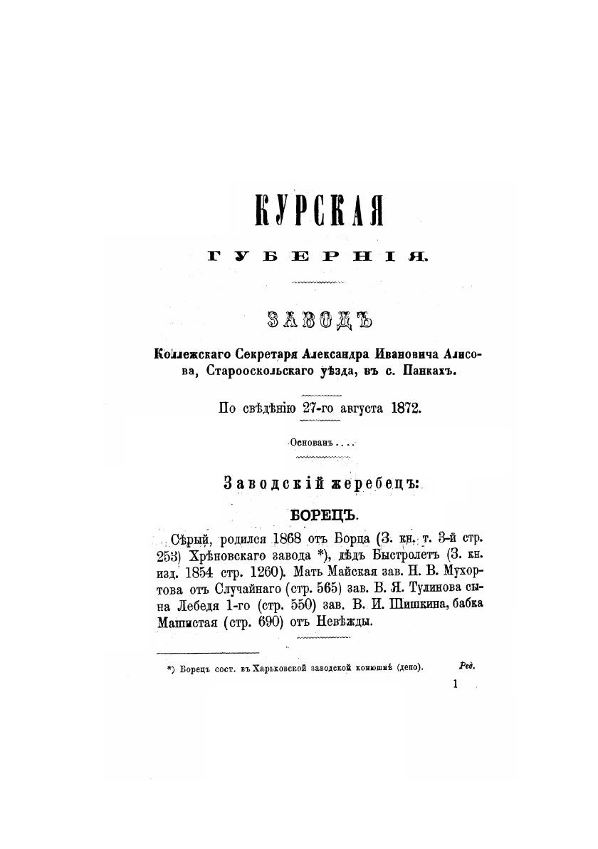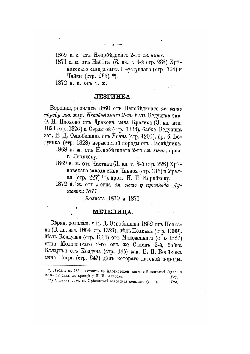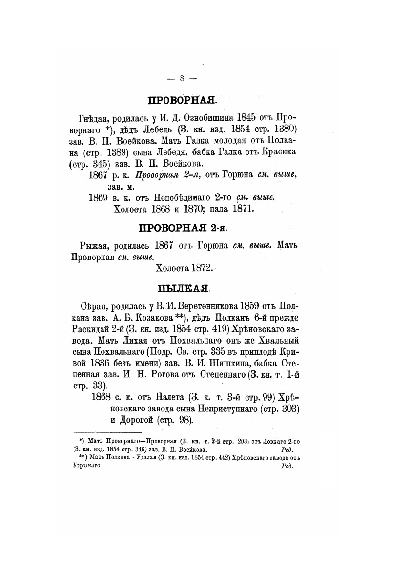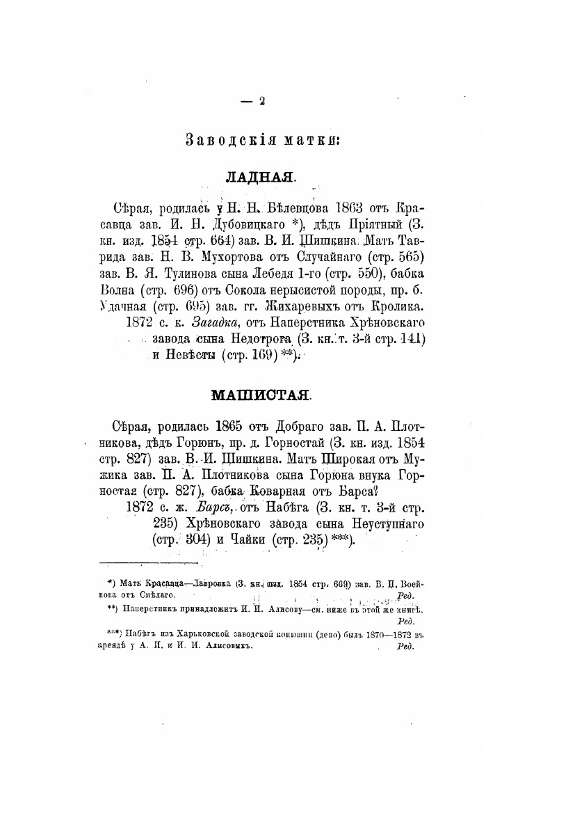 Книга рысистых лошадей в России с определением чистопородности. Издано по поручению Главного упраления государственного коннозаводства. Составлено Н. Лодыгиным. Часть 8. Южные и Малоросские губернии. Москва, в Университетской типографии, 1872 год.