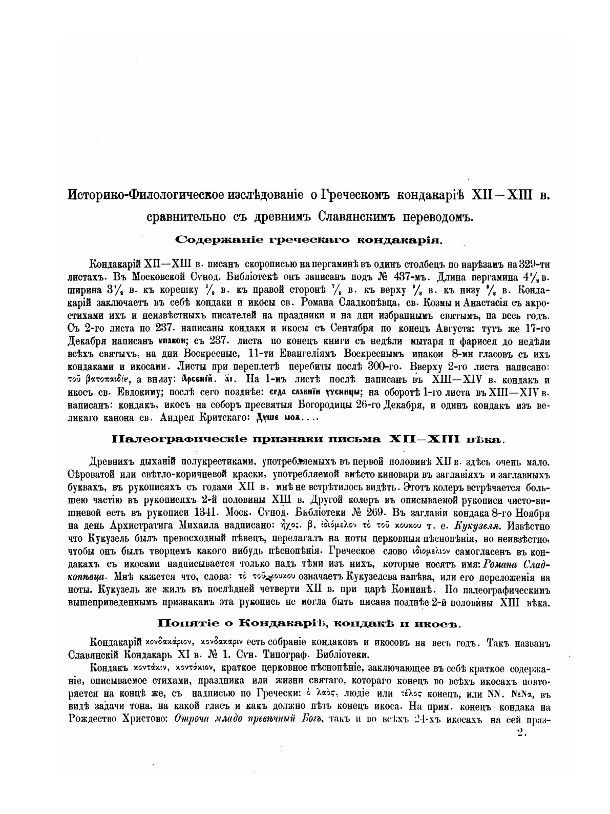 Кондакарий в греческом подлиннике XII-XIII в. по рукописи Московской синодальной библиотеки №437 с древнейшим славянским переводом.