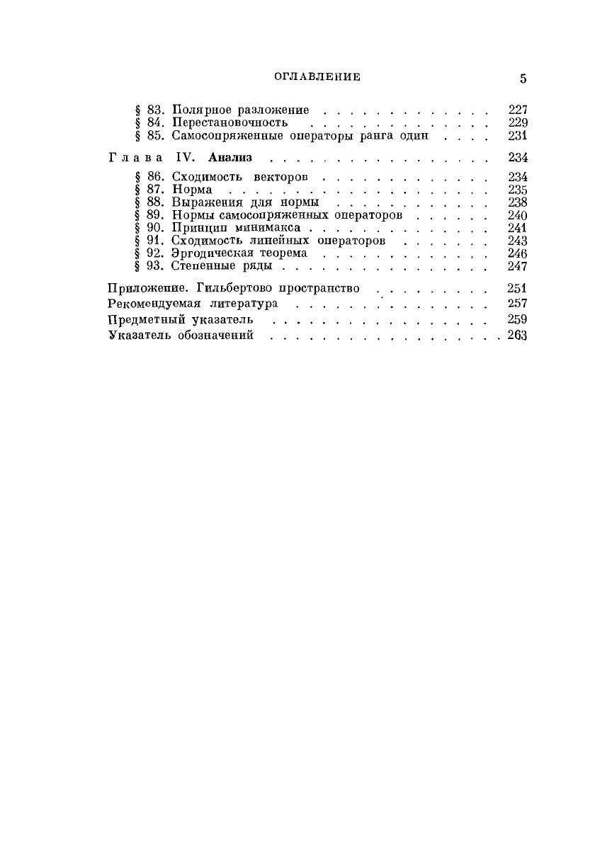 Цель, поставленная мною в этой книге, — изучить линейные операторы на конечномерных векторных пространствах методами более общих теорий. Идея заключается в выдвижении на первый план простых геометрических понятий, общих для многих разделов математики и ее применений, притом на языке, выдающем профессиональные секреты и показывающем читателю действительный ход мыслей тех, кто доказывает теоремы об интегральных уравнениях и гильбертовых пространствах. Однако мое, субъективное освещение вопроса отнюдь не должно разделяться читателем. Если не считать редких ссылок на курс математики для высшей школы, книга представляет собой самостоятельное целое и может быть прочитана любым, кто стремится глубже ознакомиться с линейными проблемами, обычно рассматриваемыми в курсах теории матриц или «высшей» алгебры. Алгебраические бескоординатные методы не теряют силы и изящества при ограничении конечномерным случаем и, на мой взгляд, столь же элементарны, как классический координатный метод.