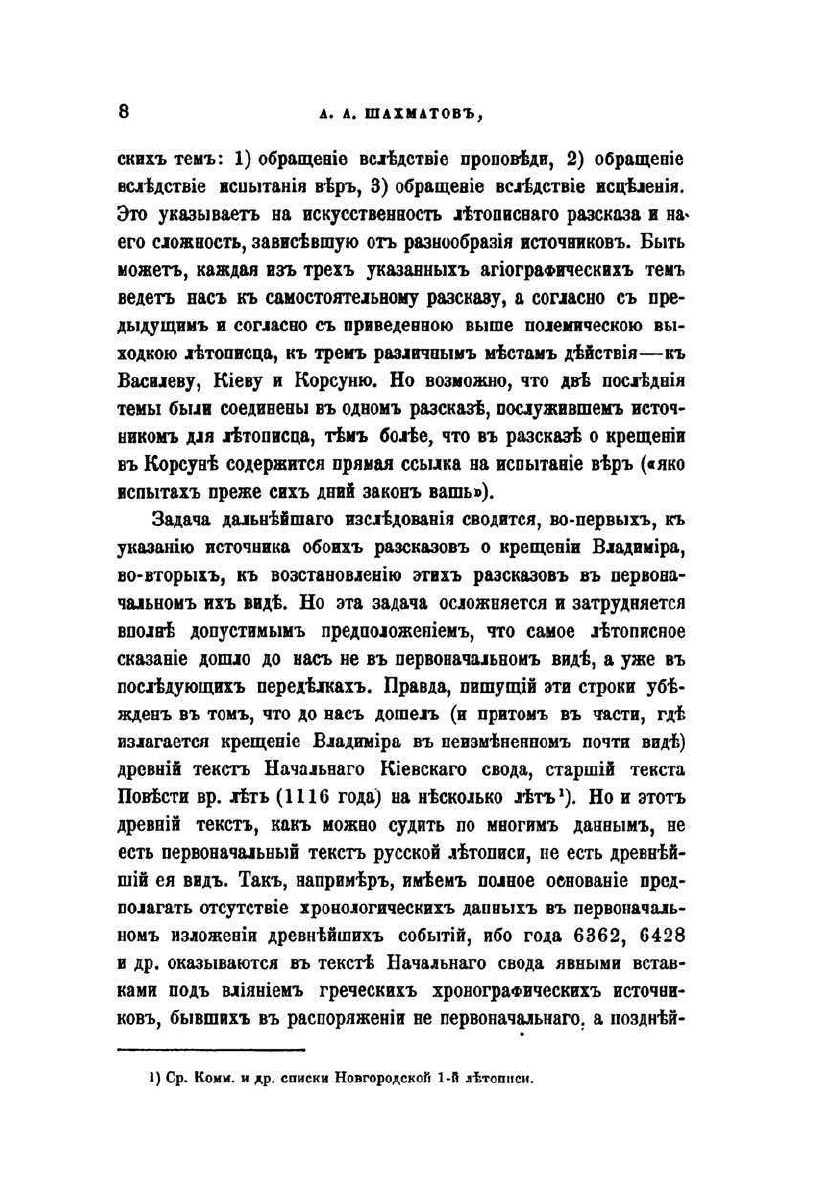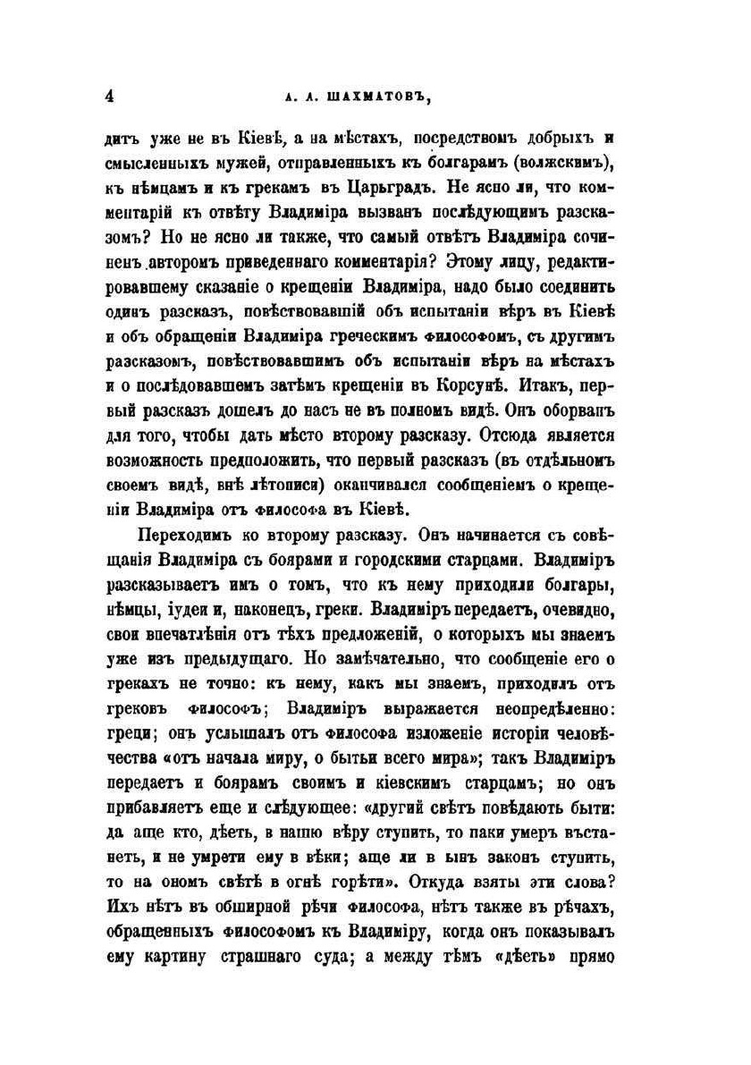 Летописный рассказ о крещении Владимира многими чертами обнаруживает свой составной и, если так можно выразиться, компилятивный характер. В нем сказалось несколько источников, которые пришлось согласовать и соединить в одно целое, с устранением из него явных противоречий. Особенно трудно было перейти от рассказа, который факт обращения Владимира в христианство связывал с блестящею проповедью греческого миссионера, к повествованию о крещении Владимира в Корсуне, поставленном в связь с чудесным исцелением его от болезни.