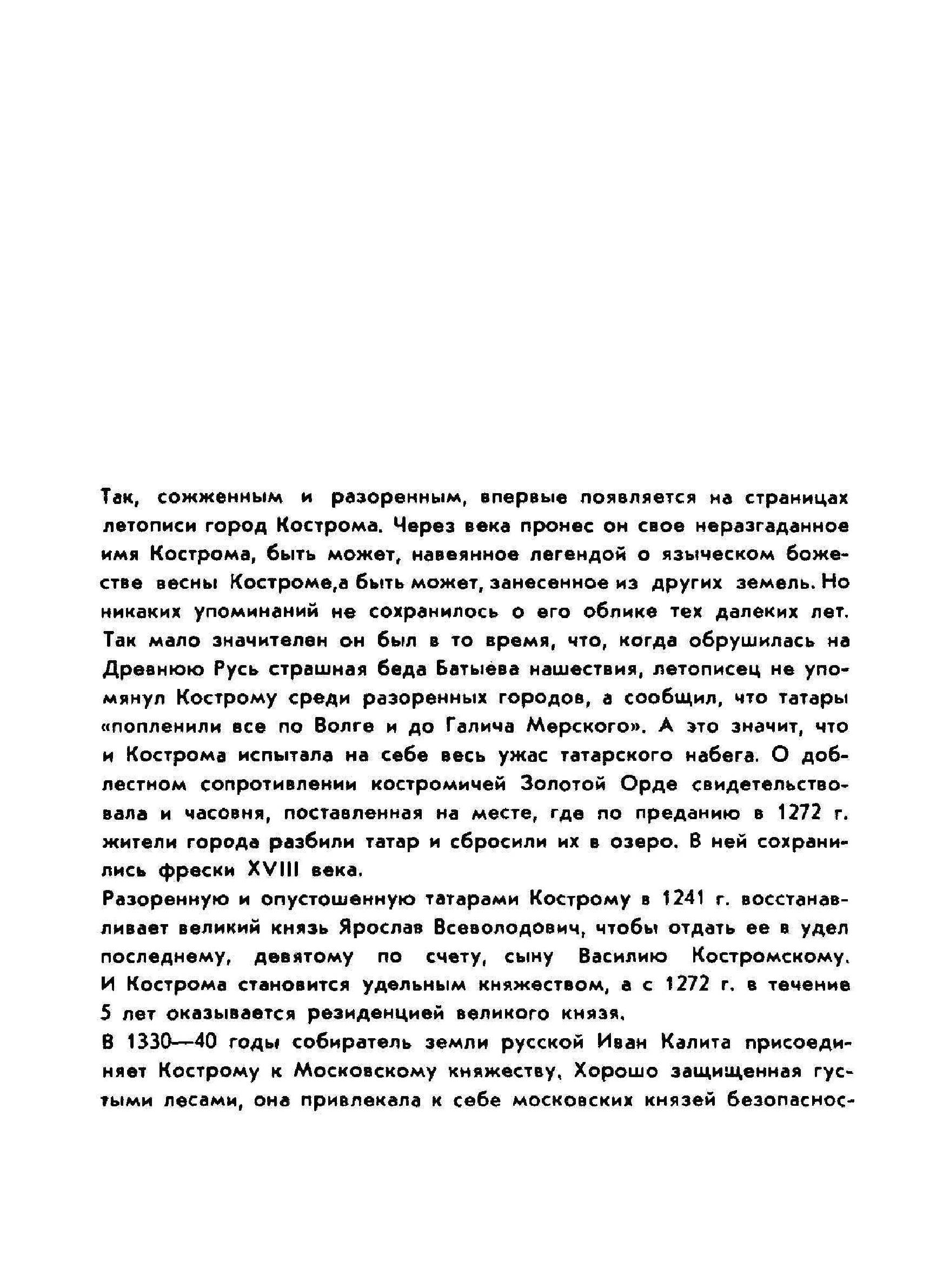 Очарование древнерусских городов в неповторимом своеобразии их архитектурного облика. Истоками своими они уходят в глубь веков, теряясь в тумане легенд и преданий. Альбом посвящен древнему зодчеству и архитектуре Костромы.