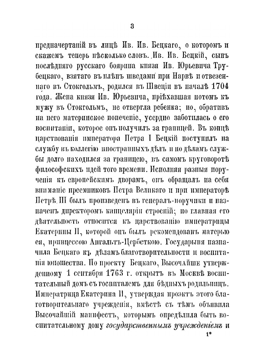 "Не смотря на множество учебныхъ и благотворительных заведенiй, основанныхъ щедротами блаженной памяти императрицы МАРIИ Феодоровны, па руссiкомъ языке нетъ сочиненiя, въ которомъ была бы разсказана, хоть вкратце, жизнь этой добродетельной монархини, сделавшей такъ много полезнаго для Россiи. Съ целiю доставить хотъ некоторыя объ ней сведения и составлена мною настоящая книжка."