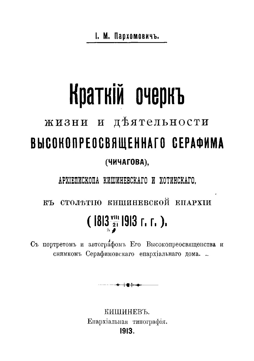 Эта книга — репринт оригинального издания (издательство "Кишинев: Епархиальная Типография", 1913 год), созданный на основе электронной копии высокого разрешения, которую очистили и обработали вручную, сохранив структуру и орфографию оригинального издания. Редкие, забытые и малоизвестные книги, изданные с петровских времен до наших дней, вновь доступны в виде печатных книг.