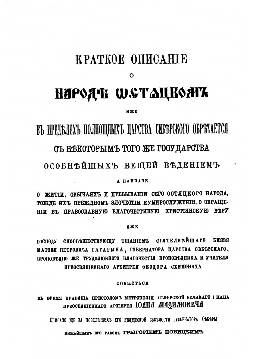 Печатная книга «Краткое описание о народе остяцком, сочиненное в 1715 году» в мягкой обложке, язык - русский. В книге 122 страниц, она напечатана на белой офсетной бумаге плотностью 80 г/м². Формат издания — 148x210 мм. Все книги аккуратно упаковываем в прочный трёхслойный непрозрачный картонный конверт.